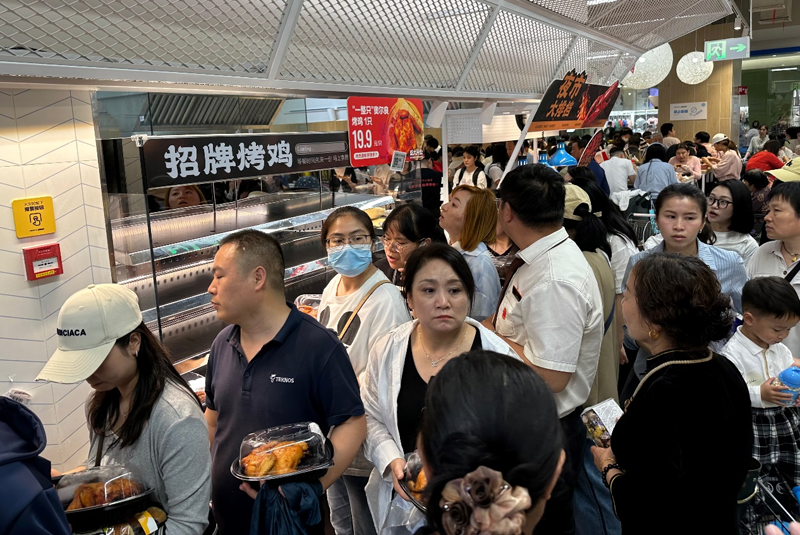 “大家耐心等一下,下一爐還有10分鐘就出來(lái)”,一位工作人員對(duì)現(xiàn)場(chǎng)排隊(duì)準(zhǔn)備買烤雞的消費(fèi)者解釋到。中午12點(diǎn)不到,盒馬的烤雞銷售已經(jīng)超過800只,榴蓮超過1000只,看著不斷進(jìn)店的消費(fèi)者,店長(zhǎng)趙偉開始組織補(bǔ)貨。 (招牌烤雞人手一只) 4月18日9:30,盒馬西安薈聚店開門迎客,就迎來(lái)客流高峰,這是盒馬在陜西布局的第20家盒馬鮮生門店。這家門店位于西安市雁塔區(qū)西部大道與子午大道交會(huì)處西安薈聚商場(chǎng)LG1層,占地面積超過4600平米。 (榴蓮半天爆賣1000只) 針對(duì)西安薈聚周邊居民小區(qū)較多、家庭用戶到店消費(fèi)占比較高的特點(diǎn),盒馬西安薈聚店精選出3000種最受歡迎的商品在門店銷售,不僅能夠滿足周邊居民一日三餐乃至五餐的需求,鮮花、日用品等也更貼近居家生活。 (大號(hào)購(gòu)物車受歡迎) 走進(jìn)盒馬鮮生西安薈聚店,消費(fèi)者會(huì)明顯感受到與其他門店的區(qū)別,這里的層高更開闊、燈光明亮、貨架之間的間距更寬敞,連購(gòu)物車都比其他門店大了一號(hào)。店長(zhǎng)趙偉解釋:“基于周邊及到店用戶的分析,家庭用戶占比較高,我們?cè)谠O(shè)計(jì)之初,就圍繞居家用戶的需求來(lái)做設(shè)計(jì),不只是門店的陳列,商品品類也更貼合居家需求, 分享裝、大包裝較多,生鮮商品的占比也較高“。 (盒馬新店開業(yè)半天人流過萬(wàn)) 記者在現(xiàn)場(chǎng)看到,除了烤雞大排長(zhǎng)隊(duì)外,波士頓龍蝦、榴蓮等生鮮商品也十分受歡迎,盒馬花園的應(yīng)季鮮花,芍藥和玫瑰在現(xiàn)場(chǎng)頗受歡迎,來(lái)逛的年輕人幾乎人手一束。而精明的叔叔阿姨在經(jīng)過計(jì)算后,發(fā)現(xiàn)鮮活基圍蝦比菜市場(chǎng)價(jià)格還優(yōu)惠,迅速呼朋引伴來(lái)購(gòu)物,據(jù)估算,這家門店半天人流量已經(jīng)過萬(wàn)。 線下火爆的同時(shí),盒馬西安薈聚店線上也解決了周邊近30萬(wàn)消費(fèi)者的買菜問題。 “薈聚店的開業(yè)把西安盒區(qū)房的覆蓋又向西推進(jìn)了5公里。”趙偉表示,南三環(huán)外以西,居民區(qū)眾多,之前南郊幾家門店也無(wú)法完全覆蓋,例如紫薇田園都市、金地西灃公園等這種萬(wàn)人大社區(qū)一直被消費(fèi)者吐槽沒辦法覆蓋到,現(xiàn)在將極大方便這些大型社區(qū)居民的居家生活! (盒馬西安薈聚店配送范圍) 去年至今,盒馬開店速度不減。目前,全國(guó)的盒馬鮮生門店已經(jīng)超過360家,盒馬此前也表示,今年計(jì)劃在全國(guó)范圍內(nèi)新開70家盒馬鮮生門店,年內(nèi)盒馬鮮生門店數(shù)有望突破400家。 據(jù)了解,西安市去年全年社會(huì)消費(fèi)品零售總額同比增長(zhǎng)3.7%,剛剛結(jié)束的清明假期,西安文旅訂單同比增長(zhǎng)4倍多,餐飲市場(chǎng)一派繁榮,多個(gè)生活服務(wù)行業(yè)消費(fèi)向好,彰顯了內(nèi)需潛力。盒馬在陜西發(fā)展也緊接這一波趨勢(shì),繼續(xù)布局。年內(nèi),位于西安南郊的曲江電競(jìng)中心還將有一家盒馬鮮生落地,屆時(shí),盒馬在陜西各類門店將超過25家。 |