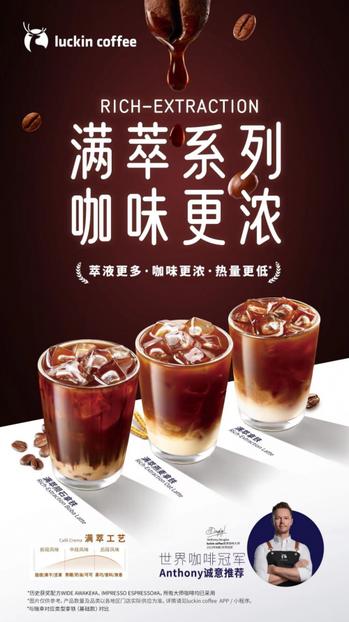 4月22日,瑞幸咖啡全新推出三款滿萃工藝系列新品,包括滿萃拿鐵、滿萃燕麥拿鐵和滿萃隕石拿鐵。該系列新品通過(guò)全新的萃取工藝,以更深層次的濃醇口感,為消費(fèi)者帶來(lái)了更加多元化、高品質(zhì)的咖啡體驗(yàn)。 滿萃系列咖啡不僅保留了濃郁的香氣和醇厚的風(fēng)味,更進(jìn)一步追求口感的豐富與平衡。瑞幸咖啡本次推出的滿萃工藝系列新品由瑞幸首席咖啡大師、WBC(世界咖啡師大賽)世界冠軍Anthony誠(chéng)意推薦,甄選IIAC金獎(jiǎng)咖啡豆,并采用全新Café Crema滿萃咖啡工藝,以更快流速、更多水量和更長(zhǎng)的萃取時(shí)間,完整萃取咖啡前、中、后段的不同風(fēng)味,確保了咖啡的風(fēng)味都能被充分釋放?Х日w萃液更多,咖味更濃,為消費(fèi)者帶來(lái)更加細(xì)膩的味覺(jué)享受。 為滿足日益多元化的消費(fèi)者需求,瑞幸咖啡不斷創(chuàng)新,同時(shí)優(yōu)化完善高品質(zhì)咖啡供應(yīng)鏈,持續(xù)提供更符合中國(guó)消費(fèi)者口味的高品質(zhì)咖啡,相繼推出了多款備受歡迎的爆款產(chǎn)品。例如,3年賣出超7億杯、單品銷售額破百億的生椰拿鐵;上市首日便售出542萬(wàn)杯、銷售額破億元的醬香拿鐵;上市首周售出1624萬(wàn)杯的馬斯卡彭生酪拿鐵等。這些咖啡產(chǎn)品極大地豐富了消費(fèi)者的咖啡體驗(yàn),也充分彰顯了瑞幸咖啡對(duì)消費(fèi)者口味的深刻理解和出色的產(chǎn)品創(chuàng)新力。瑞幸咖啡全新推出的滿萃系列產(chǎn)品,將進(jìn)一步豐富其產(chǎn)品矩陣,更好地滿足消費(fèi)者的多元化需求,助力瑞幸咖啡持續(xù)引領(lǐng)中國(guó)咖啡消費(fèi)市場(chǎng)新潮流。 未來(lái),瑞幸咖啡持續(xù)為廣大消費(fèi)者帶來(lái)更多高品質(zhì)、高性價(jià)比、高便利性的咖啡產(chǎn)品,帶動(dòng)中國(guó)咖啡行業(yè)朝著更加多元化、高質(zhì)量的方向發(fā)展。 |