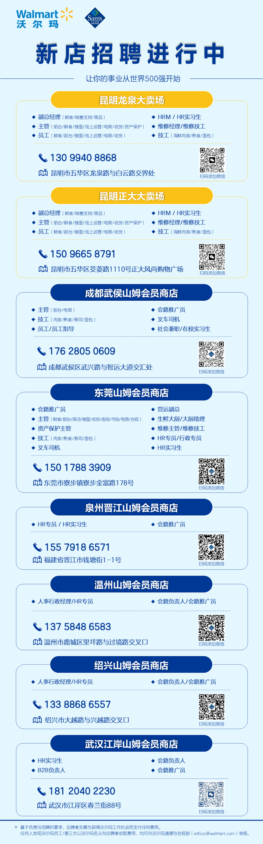 5月9日,《職業(yè)零售網(wǎng)》獲悉,沃爾瑪官方招聘公眾號(hào)發(fā)布了其5月份新店招聘的信息。 招聘信息顯示,沃爾瑪計(jì)劃在全國多個(gè)城市,包括成都、武漢、泉州、東莞、紹興、溫州、昆明等地開設(shè)8家新店,并將廣泛招募個(gè)人才。其中,新店類型包括6家山姆會(huì)員店和2家大型賣場。 此次新店招聘涉及多個(gè)職位,包括鮮食/銷售支持/商品副總經(jīng)理、營運(yùn)副總、生鮮大廚/大廚助理、前臺(tái)/鮮食/樓面/線上運(yùn)營/電商/收貨/資產(chǎn)保護(hù)主管、海鮮肉類/熟食/面包技工、人事行政經(jīng)理、HR專員/HR實(shí)習(xí)生、會(huì)籍推廣員、前臺(tái)/鮮食/樓面/線上運(yùn)營/電商/收貨員工等崗位。 值得注意的是,與4月相比,南京江北山姆會(huì)員店已不在新店招聘之中,這表明該崗位的招聘已經(jīng)基本完成。而南京二店則正在緊鑼密鼓地準(zhǔn)備開業(yè),距離5月25日開業(yè)僅剩15天時(shí)間。 據(jù)了解,山姆會(huì)員店計(jì)劃開設(shè)的6家新店,包括成都武侯店、武漢江岸店、泉州晉江店、東莞寮步店、浙江紹興店和溫州店,都預(yù)計(jì)將在2024年開業(yè)。其中原本定于2025年開業(yè)的東莞店和溫州店,由于建設(shè)進(jìn)度加快,現(xiàn)已提前封頂,并預(yù)計(jì)在2024年11月和12月開業(yè)。 成都武侯山姆會(huì)員商店位于雙鳳橋TOD,是山姆在成都的第三家門店。據(jù)公開資料顯示,該店約1.9萬方的體量,將被打造成“空中花園商店”,涵蓋3400平方米的空中花園、累計(jì)500米長的空中綠廊等,預(yù)計(jì)2024年開業(yè)。目前,山姆在成都已有兩家門店,分別是華僑城店和天府新區(qū)店。 武漢江岸山姆會(huì)員商店位于江岸區(qū)春蘭街星悅四期對(duì)面,是山姆在武漢的第四家門店,已于2023年11月封頂,預(yù)計(jì)2024年開業(yè)。據(jù)介紹,該門店總面積約為2.12萬平方米,相較于以往山姆店,該店在新增業(yè)態(tài)、會(huì)籍分層、強(qiáng)化體驗(yàn)感與內(nèi)場布局都有很多變化。截至目前,武漢在運(yùn)營和在建山姆會(huì)員店已經(jīng)有4家,分別是2014年開業(yè)的山姆會(huì)員店(硚口店)、2021年開業(yè)的山姆會(huì)員店(光谷店)、2023年開業(yè)的山姆會(huì)員店(漢陽店),以及正在建設(shè)中的山姆會(huì)員店(后湖店),至此武漢成為華中地區(qū)擁有山姆數(shù)量最多的城市。 泉州晉江山姆會(huì)員商店位于晉江池店片區(qū),是山姆在泉州的第一家門店,已于2月初封頂,預(yù)計(jì)2024年底開業(yè)。據(jù)了解,泉州晉江山姆會(huì)員商店項(xiàng)目分為兩期,其中一期為山姆會(huì)員商店,占地面積31.274畝(2.08萬平方米),總建筑面積約7.4萬平方米;二期擬投建周邊商業(yè)配套項(xiàng)目,占地面積19.657畝,總建筑面積約6.4萬平方米。目前,福建一共有三家山姆會(huì)員店,兩家位于福州,一家位于廈門。 溫州山姆會(huì)員店位于溫州市鹿城區(qū)里垟路與過境路交叉口,是山姆在溫州的第一家門店。該項(xiàng)目占地面積約2.83萬平方米,一共分為2層,共規(guī)劃1400余個(gè)停車位。去年底,溫州山姆會(huì)員店已率先封頂,原來預(yù)計(jì)于2025年上半年開業(yè)。然而,根據(jù)最新消息,該項(xiàng)目計(jì)劃今年12月開業(yè)。它將打造省內(nèi)體量最大、配貨最全、庫存最足的山姆會(huì)員系列浙南第一店。項(xiàng)目目前正在主體結(jié)構(gòu)施工,現(xiàn)已完成總進(jìn)度的60%左右。 東莞山姆會(huì)員商店位于寮步金富路與龍勝路交會(huì)處,是山姆在東莞的第一家門店。項(xiàng)目總投資約4.86億元,占地面積超2.3萬平方米,共三層,其中一二層用于購物,三層、頂樓及地下室用于停車,共規(guī)劃有1097個(gè)停車位。目前山姆會(huì)員店整體項(xiàng)目施工進(jìn)度已經(jīng)完成60%左右,預(yù)計(jì)在8月底全面完工并交付給山姆會(huì)員店運(yùn)營方,預(yù)計(jì)在11月初山姆會(huì)員店將正式開業(yè)。 紹興山姆會(huì)員商店位于棒球未來新城,是山姆在紹興第一家門店,據(jù)說是長三角最大的山姆會(huì)員店。該項(xiàng)目總投資約5.2億元,門店總用地面積約2.55萬平方米,總建筑面積約8萬平方米,其中地上建筑面積3.83萬平方米,地下建筑面積4.2萬平方米。據(jù)悉,該項(xiàng)目在春節(jié)前已完成二層樓面部分的施工,且春節(jié)期間不停工,總體建設(shè)進(jìn)度達(dá)55%,預(yù)計(jì)2024年第四季度亮相。 除了新開山姆會(huì)員店外,沃爾瑪還計(jì)劃在昆明開設(shè)兩家大賣場,分別是昆明龍泉店和正大店。值得一提的是,據(jù)網(wǎng)友透露,昆明龍泉店原址是昆明龍泉家樂福店,如今被沃爾瑪拿下了。 圖來源:沃爾瑪招聘。 目前零售業(yè)態(tài)的面臨行業(yè)變革,消費(fèi)者的行為習(xí)慣及理念也隨之發(fā)生巨大變化。傳統(tǒng)大賣場業(yè)態(tài)日漸式微,難以適應(yīng)新零售時(shí)代的需求變化。面對(duì)這一趨勢(shì),沃爾瑪不得不改變經(jīng)營策略,對(duì)目標(biāo)顧客群體重新進(jìn)行細(xì)分和篩選。 一方面發(fā)力山姆會(huì)員店,為追求生活品質(zhì)的“中產(chǎn)階層”提供高品質(zhì)且性價(jià)比高的產(chǎn)品。另一方面不斷探索升級(jí)大賣場業(yè)態(tài),試圖通過差異化商品和極具價(jià)格優(yōu)勢(shì)的渠道專享新品,重構(