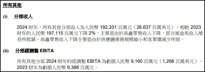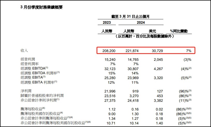5月14日,阿里巴巴集團(tuán)發(fā)布2024財(cái)年Q4及全年業(yè)績(jī)(2023年4月1日至2024年3月31日)。 財(cái)報(bào)顯示,阿里巴巴集團(tuán)Q4收入2218.74億元,同比增長(zhǎng)7%,超市場(chǎng)預(yù)期;調(diào)整后凈利潤(rùn)為244.18億元,相較2023年同期的凈利潤(rùn)273.75億元下降11%。 圖來源:阿里巴巴財(cái)報(bào)。 本財(cái)季,淘天集團(tuán)營(yíng)收932.2億元,同比增長(zhǎng)4%。據(jù)悉,淘寶天貓購(gòu)買人數(shù)和購(gòu)買頻次顯著增長(zhǎng),推動(dòng)線上GMV及訂單量實(shí)現(xiàn)同比雙位數(shù)增長(zhǎng)。同時(shí),88VIP會(huì)員數(shù)量實(shí)現(xiàn)同比雙位數(shù)增長(zhǎng),超過3500萬。 阿里云Q4營(yíng)收255.95億元,同比增長(zhǎng)3%,同時(shí)繼續(xù)保持盈利,經(jīng)調(diào)整EBITA同比增長(zhǎng)45%至14.32億元。核心公共云產(chǎn)品收入實(shí)現(xiàn)雙位數(shù)同比增長(zhǎng),AI相關(guān)收入增長(zhǎng)加快,持續(xù)實(shí)現(xiàn)三位數(shù)同比增長(zhǎng)。 阿里海外相關(guān)業(yè)務(wù)繼續(xù)保持增長(zhǎng)勢(shì)頭,財(cái)報(bào)顯示,阿里國(guó)際數(shù)字商業(yè)集團(tuán)Q4營(yíng)收同比增長(zhǎng)45%至274.5億元,旗下零售平臺(tái)的季度整體訂單同比增長(zhǎng)20%。2024年4月,Choice業(yè)務(wù)占速賣通整體訂單的約70%。 阿里其他業(yè)務(wù)集團(tuán)經(jīng)營(yíng)效率也在繼續(xù)改善。本財(cái)季,菜鳥營(yíng)收245.57億元,同比增長(zhǎng)30%。同時(shí)受益于跨境快遞履約服務(wù)帶來的收入增長(zhǎng),菜鳥2024財(cái)年?duì)I收同比增長(zhǎng)28%至990.2億元。本地生活集團(tuán)收入同比增長(zhǎng)19%,全年收入近600億元,同比減虧25%。2024財(cái)年,大文娛集團(tuán)收入同比增長(zhǎng)15%,并實(shí)現(xiàn)虧損同比收窄。 阿里巴巴集團(tuán)同時(shí)宣布,預(yù)計(jì)2024年8月底完成在香港雙重主要上市。 阿里巴巴集團(tuán)首席執(zhí)行官吳泳銘表示:“本季度業(yè)績(jī)表明我們的戰(zhàn)略見效,阿里正在重回增長(zhǎng)軌道。通過聚焦用戶體驗(yàn),淘天和國(guó)際電商業(yè)務(wù)的GMV均實(shí)現(xiàn)雙位數(shù)同比增長(zhǎng)。我們也欣喜見到AI產(chǎn)品的客戶及相關(guān)云計(jì)算收入加速增長(zhǎng)。我們將繼續(xù)堅(jiān)定地執(zhí)行戰(zhàn)略聚焦,面向未來把握好增長(zhǎng)機(jī)遇。” 此外,2024財(cái)年,阿里巴巴集團(tuán)收入達(dá)9411.68億元,同比增長(zhǎng)8%;凈利潤(rùn)為713.32億元,同比增長(zhǎng)9%;經(jīng)調(diào)整EBITA利潤(rùn)為1650.28億元,同比增長(zhǎng)12%。 圖來源:阿里巴巴財(cái)報(bào)。 阿里巴巴表示,過去一年,阿里巴巴集團(tuán)主動(dòng)變革,圍繞“用戶為先、AI驅(qū)動(dòng)”的戰(zhàn)略方向,在淘寶天貓核心用戶體驗(yàn)、核心公共云產(chǎn)品和AI基礎(chǔ)設(shè)施、海外電商三大領(lǐng)域堅(jiān)定投入。 值得注意的是,阿里巴巴被歸類為“其他”的非核心業(yè)務(wù)收入規(guī)模,在2024財(cái)年第四財(cái)季和2024財(cái)年分別達(dá)到514.58億元、1923.31億元,其中,盒馬收入持續(xù)增長(zhǎng)。 圖來源:阿里巴巴財(cái)報(bào)。 數(shù)據(jù)顯示,今年1月至今,盒馬鮮生在全國(guó)多個(gè)城市開出約10家新店,僅4月就有4家新店開出。此前,盒馬方面表示,今年將在長(zhǎng)三角地區(qū)加密布局,近期新進(jìn)入江蘇啟東、常熟等城市。據(jù)了解,年內(nèi)盒馬鮮生的全國(guó)門店數(shù)有望突破400家。 |