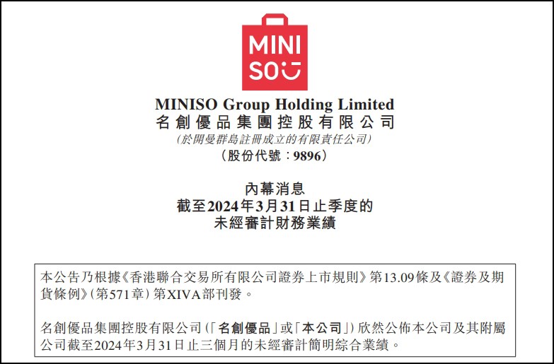 5月14日,名創(chuàng)優(yōu)品集團(tuán)公布了2024年第一季度財(cái)報。財(cái)報顯示,第一季度公司總營收同比增長26%至37.2億元,突破一季度業(yè)績新高。 具體來看,本季度名創(chuàng)優(yōu)品國內(nèi)市場營收25億元, 同比增長16% ;海外業(yè)務(wù)收入突破12億,實(shí)現(xiàn)53%的同比增速。直營市場收入同比增長超過92%,連續(xù)四個季度實(shí)現(xiàn)了超過80%的同比增長,直營市場占海外收入58%,同比和環(huán)比均有增長。 另外,一季度名創(chuàng)優(yōu)品IP產(chǎn)品銷售占比達(dá)到了26%。其中,國內(nèi)IP產(chǎn)品占比約四分之一,海外IP占比同比大幅提升至40%以上。截至目前,名創(chuàng)優(yōu)品已經(jīng)與迪士尼、三麗鷗、侏羅紀(jì)、故宮宮廷文化等超100個全球知名IP達(dá)成合作。 名創(chuàng)優(yōu)品成立于2013年,是一家創(chuàng)意居家生活用品零售商,涵蓋生活家居、電子電器、紡織品、包袋配飾、美妝工具等11個品類。2020年在紐交所進(jìn)行第一次上市。2022年名創(chuàng)優(yōu)品又回歸香港交易所上市。 截至2024年3月31日,名創(chuàng)優(yōu)品全球門店數(shù)達(dá)到6630家,其中國內(nèi)門店數(shù)4034家,海外門店數(shù)2596家。在開店層面,本季度凈新增門店217家,打破了第一季度的開店紀(jì)錄。 |