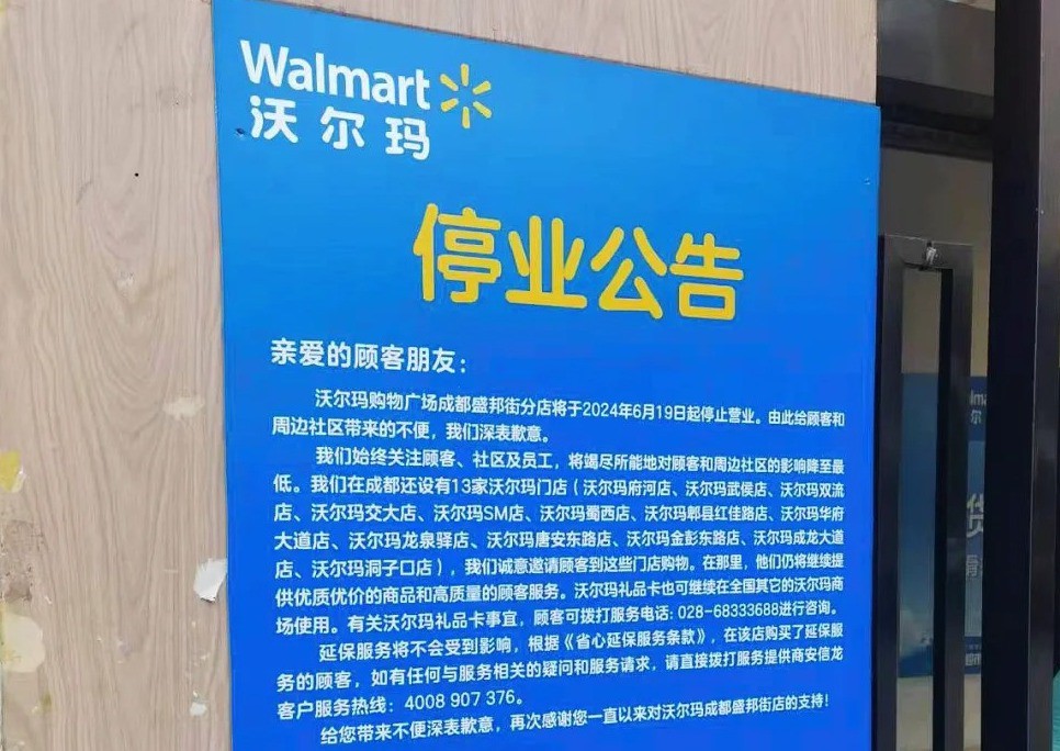 《職業(yè)零售網(wǎng)》獲悉,近日,沃爾瑪成都盛邦街店宣布將于2024年6月19日起停止營業(yè)。 公告顯示,該店關閉后,沃爾瑪在成都門店縮減至13家門店,分別是沃爾瑪府河店、沃爾瑪武侯店、沃爾瑪雙流店、沃爾瑪交大店、沃爾瑪SM店、沃爾瑪蜀西店、沃爾瑪郫縣紅佳店、沃爾瑪華府大道店、沃爾瑪龍泉驛店、沃爾瑪唐安東路店、沃爾瑪金彭東路店、沃爾瑪成龍大道店和沃爾瑪洞子口店。 據(jù)了解,該店位于高新區(qū)大源商圈的清鳳時代城,面積16712平方米,于2018年12月13日開業(yè),運營至今已5年半有余。如今宣布停業(yè),令人唏噓不已。 值得一提的是,此前沃爾瑪成都西城分店已于5月15日停止營業(yè)。該店位于青羊區(qū)石人北路,周邊同樣老小區(qū)眾多,消費客群密集。據(jù)悉,其前身為好又多量販(西城店),在好又多被沃爾瑪收購之后,賣場更名為沃爾瑪,整個場子運營時間超過20年。 資料顯示,沃爾瑪于1999年進入四川市場,先后在成都、宜賓、自貢、廣漢、南充、巴中、眉山、閬中等多個城市開設有大賣場,其中有16家門店位于成都。雖然沃爾瑪頻繁關店,但其山姆會員店正在加速擴張。目前在成都就有2家門店(成都店和成都麓山店),而第三家成都武侯店也將于今年開業(yè)。預計到今年年底,山姆會員店有望突破54家。 |