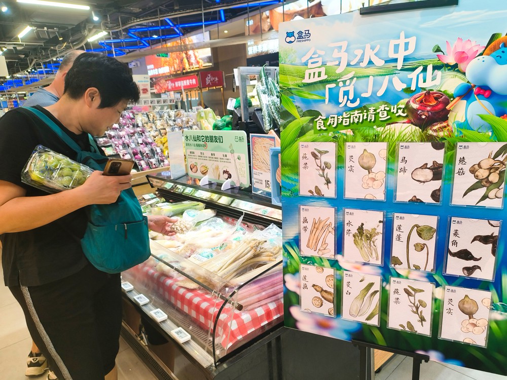 “茨菇削皮洗凈切片,生姜小火炒香,放五花肉煸炒,料酒去腥,將茨菇放入鍋中,加調(diào)料翻炒,加水小火燜8分鐘出鍋。”在北京十里堡盒馬鮮生門店,消費(fèi)者劉女士一邊挑選貨架上的茨菇,一邊翻閱旁邊放著的“水八仙”食用指南。在近10種水八仙商品旁邊,放著一張張帶著精美插畫的烹飪菜譜,供消費(fèi)者取閱帶走。 (北京十里堡盒馬門店,消費(fèi)者可以自取水八仙菜譜) 在江南地區(qū),茭白、蓮藕、菱角、芡實(shí)、莼菜、荸薺、茨菇、水芹等八種水生食物,被稱為水八仙。老話說,“春季荸薺夏時(shí)藕,秋末慈姑冬芹菜。三到十月茭白鮮,水生四季有蔬菜。”形容的是水八仙貫穿于四季。而近年來,盒馬通過候鳥式布局基地、包裝服務(wù)升級(jí)等方式,將這些江南時(shí)蔬的嘗鮮時(shí)間、食用地域無(wú)限拓展。 在鄭州,國(guó)貿(mào)360盒馬的店長(zhǎng)旭丹也告訴記者,由于各地飲食習(xí)慣不一,作為江南清淡飲食的水八仙,在剛進(jìn)入貨架時(shí),遭到了不少冷遇。這幾年,盒馬將水八仙系列的產(chǎn)品不斷做了包裝改良、線上推廣、食用指引等等,消費(fèi)者不但可以一站式購(gòu)齊“水八仙”系列時(shí)蔬,還能了解一些或許從未聽過的食材的烹飪指南,讓天南海北的消費(fèi)者逐漸尋味而來。盒馬數(shù)據(jù)顯示,今年西安地區(qū)蓮蓬蓮子銷售同比增長(zhǎng)190%、鄭州門店茭白同比增長(zhǎng)46.7%,在北京,水八仙系列商品連續(xù)兩年增長(zhǎng)超過50%,其中蓮子蓮蓬、藕類等增幅明顯。 (嘗鮮正當(dāng)時(shí) 盒馬水八仙集中上市) 所謂“嘗鮮正當(dāng)時(shí)”,貫穿于四季的水八仙,是如何在這個(gè)夏天集中在貨架上呢?盒馬水八仙采購(gòu)負(fù)責(zé)人陸辰燁表示,這有賴于我國(guó)地大物博和現(xiàn)代農(nóng)業(yè)的蓬勃發(fā)展。以蓮蓬為例,盒馬采購(gòu)跑遍全國(guó),在海南、江西、湖北、浙江分別找到不同的基地,由于地理?xiàng)l件和種植環(huán)境差異,蓮蓬的上市時(shí)間不同,在盒馬的貨架期也從5月延長(zhǎng)到8月。 西湖果蓮,是盒馬水八仙系列里的“即食菜”,在鮮蓮子主產(chǎn)地的杭州臨平,杭州蓮誼農(nóng)業(yè)開發(fā)有限公司在與盒馬合作訂單農(nóng)業(yè)后,放心地投入生產(chǎn),通過引進(jìn)先進(jìn)技術(shù),在蓮子發(fā)生褐變前完成采摘、預(yù)冷、包裝,使保鮮時(shí)長(zhǎng)延至7天,打破了制約鮮蓮銷售的保鮮瓶頸,讓新鮮蓮子即使長(zhǎng)途跋涉地來到全國(guó)各地的盒馬貨架后,依然能保持口感甜、水分多、蓮心不苦等特質(zhì)。 (江西有機(jī)茭白盒馬村,采用人工物理殺菌方式,最大程度調(diào)節(jié)土壤酸堿度) 在每年4月開始大量上市的水生茭白,會(huì)在6-9月間隙出現(xiàn)自然生長(zhǎng)周期的斷茬情況,在此期間則由江西景德鎮(zhèn)盒馬村的有機(jī)茭白“頂上”。 在位于江西景德鎮(zhèn)的有機(jī)盒馬村里,成片的茭白已經(jīng)成熟!斑@里的山林覆蓋率達(dá)到80%,茭白的種植都分布在山間小地塊,山泉水種出來的茭白肉質(zhì)更緊密,口感格外地細(xì)嫩甜。”盒馬村負(fù)責(zé)人、陸一生態(tài)農(nóng)業(yè)總經(jīng)理鄭義六介紹,今年的茭白長(zhǎng)勢(shì)喜人,加之種植面積擴(kuò)大了七成多,預(yù)計(jì)總產(chǎn)量可以翻一倍, 計(jì)劃擴(kuò)大供應(yīng)到杭州、南京、武漢等地的盒馬門店。 |