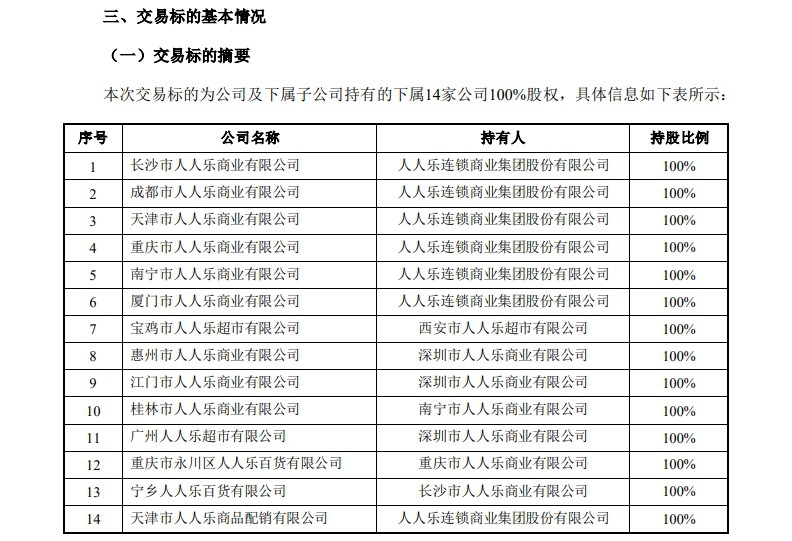 7月13日,*ST人樂披露,擬將其持有的14家標(biāo)的公司之100%股權(quán)和公司及下屬子公司對(duì)其中13家有經(jīng)營(yíng)門店標(biāo)的公司的相應(yīng)債權(quán)通過公開掛牌轉(zhuǎn)讓的方式對(duì)外轉(zhuǎn)讓。 該14家標(biāo)的公司包括: 13家公司分別為:長(zhǎng)沙市人人樂商業(yè)有限公司、寶雞市人人樂超市有限公司、成都市人人樂商業(yè)有限公司、天津市人人樂商業(yè)有限公司、重慶市人人樂商業(yè)有限公司、南寧市人人樂商業(yè)有限公司、廈門市人人樂商業(yè)有限公司、惠州市人人樂商業(yè)有限公司、江門市人人樂商業(yè)有限公司、桂林市人人樂商業(yè)有限公司、廣州人人樂超市有限公司、重慶市永川區(qū)人人樂百貨有限公司、寧鄉(xiāng)人人樂百貨有限公司。 1家物流公司為:天津市人人樂商品配銷有限公司。 公告顯示,上述13家公司已經(jīng)資不抵債,其股權(quán)對(duì)應(yīng)的評(píng)估值為-21.01億元。截至2024年4月30日,13家公司的債權(quán)賬面價(jià)值為165,374.81萬元。*ST人樂向產(chǎn)權(quán)交易中心申請(qǐng)以1.00元為底價(jià)通過掛牌方式公開轉(zhuǎn)讓13家公司100%的股權(quán)和相應(yīng)債權(quán)。 在披露1元掛牌轉(zhuǎn)讓14家子(孫)公司的股權(quán)和債權(quán)消息之后,7月17日,人人樂連續(xù)第5個(gè)漲停。 據(jù)悉,2023年,*ST人樂一共關(guān)閉了22家店。2023年年報(bào)顯示,截至2023年12月31日,該公司業(yè)務(wù)覆蓋廣東、湖南、西安、廣西、福建、成都、重慶、天津等省、市、自治區(qū),開設(shè)實(shí)體門店91家。報(bào)告期內(nèi),該公司關(guān)閉門店22家,未新開門店。 2021年,該公司實(shí)現(xiàn)營(yíng)業(yè)收入50.96億元,凈利潤(rùn)虧損8.57億元;2022年,該公司的營(yíng)業(yè)收入減少至39.71億元,凈利潤(rùn)虧損5.07億元;2023年,該公司的營(yíng)業(yè)收入繼續(xù)降低至28.53億元,凈利潤(rùn)虧損4.98億元。三年下來,*ST人樂累計(jì)虧損18.62億元。 由于2023年度凈資產(chǎn)為負(fù),人人樂于2024年4月22日被實(shí)施風(fēng)險(xiǎn)警示,證券簡(jiǎn)稱更名為“*ST人樂”。 今年的財(cái)務(wù)數(shù)據(jù)依然不容樂觀。7月10日,*ST人樂披露半年報(bào)業(yè)績(jī)預(yù)告,稱公司2024年上半年的凈利潤(rùn)預(yù)計(jì)虧損2.4億元至3億元。 *ST人樂解釋造成虧損的主要原因:公司對(duì)于部分因未來發(fā)展?jié)摿κ芟、關(guān)閉虧損門店后導(dǎo)致門店較少的區(qū)域?qū)嵤┦湛s調(diào)整策略,對(duì)整體營(yíng)收業(yè)績(jī)產(chǎn)生影響;受網(wǎng)絡(luò)零售、線下各細(xì)分實(shí)體零售業(yè)態(tài)持續(xù)沖擊,實(shí)體商超門店客流不斷減少,銷售下降,經(jīng)營(yíng)不及預(yù)期。 |