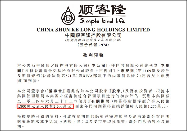 8月1日,中國順客隆控股有限公司發(fā)布盈利預(yù)警公告。 |