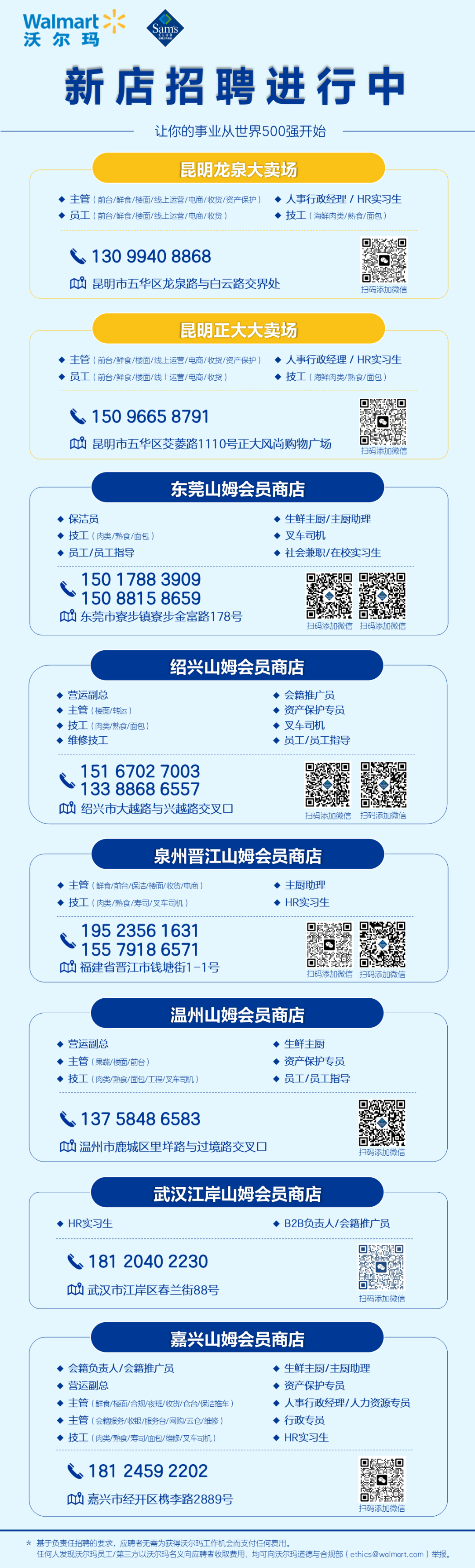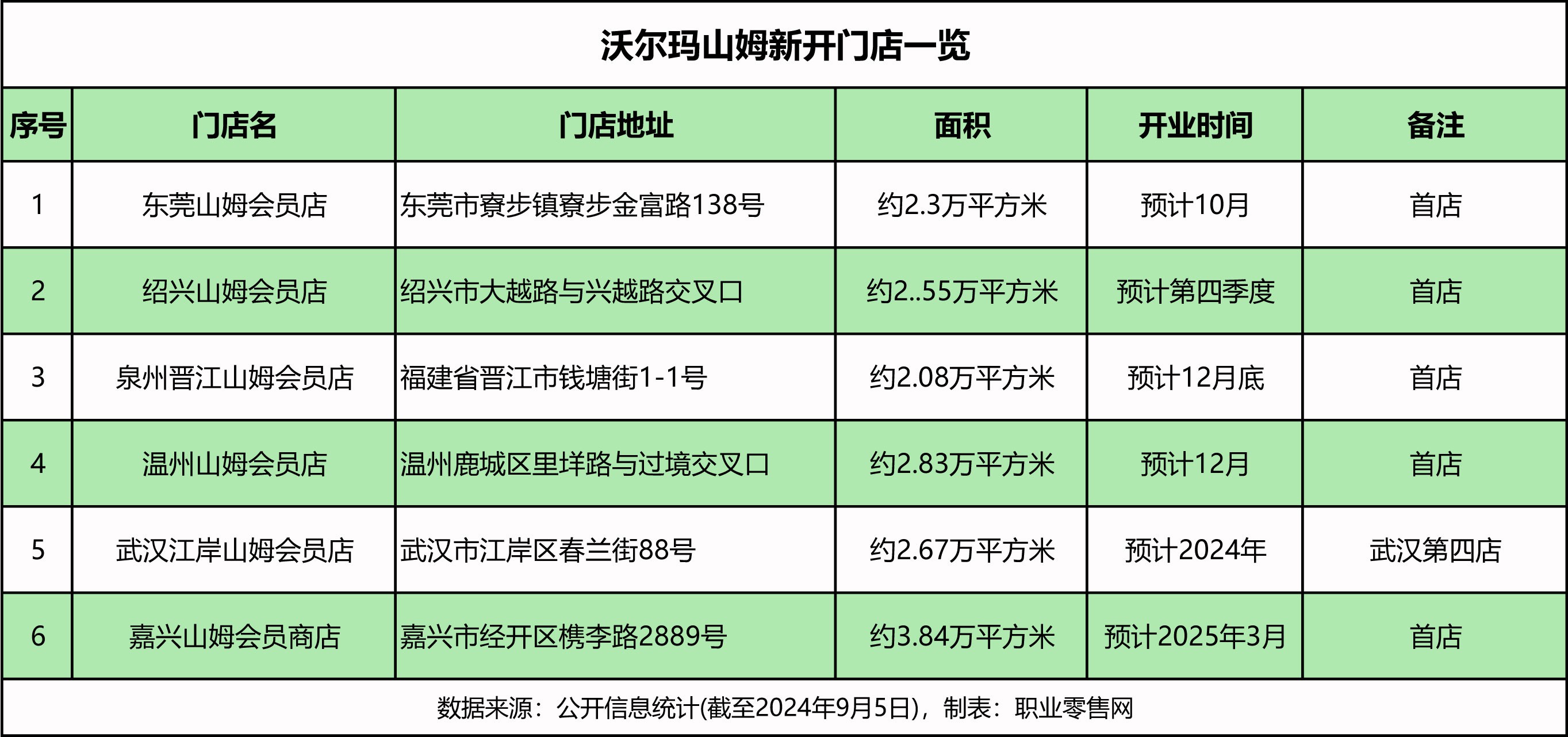 《職業(yè)零售網(wǎng)》獲悉,9月5日,沃爾瑪招聘官方公眾號發(fā)布了“9月份新店招聘信息”,宣布山姆會員店將在東莞、紹興、泉州、溫州、武漢、嘉興等六座城市開設(shè)新店,并在積極招聘相關(guān)工作人員。 與8月份發(fā)布的招聘信息相比,新增嘉興山姆會員店,這也預(yù)示著嘉興山姆已進入開業(yè)準(zhǔn)備階段。再往前,南京江北店與成都武侯店分別于5月25日、8月31日盛大啟幕,顯示出山姆正在快速而穩(wěn)健的發(fā)展。 根據(jù)招聘信息顯示,此次新店招聘涉及多個職位,包括營運副總、生鮮主廚、生鮮大廚/大廚助理、主廚助理、前臺/鮮食/樓面/電商/收貨主管、肉類/熟食/壽司技工、HR實習(xí)生、會籍推廣員、員工/員工指導(dǎo)、人事行政經(jīng)理/人力資源專員等崗位。 除山姆會員店外,昆明龍泉大賣場、昆明正大大賣場也在招聘中,職位包括人事行政經(jīng)理/HR實習(xí)生、鮮食/前臺/樓面/線上運營/電商/收貨/資產(chǎn)保護主管、海鮮肉類/熟食/面包技工等。 值得注意的是,昆明龍泉店與正大店則是接手原家樂福超市門店。自2023年10月23日家樂福昆明白云店關(guān)閉后,家樂福在昆明旗下11家門店已全部關(guān)停,正式退出當(dāng)?shù)厥袌。原昆明家樂福超市龍泉店與正大店的位置,則被沃爾瑪接手開設(shè)兩家全新門店,其中龍泉店有望在9至10月間正式開業(yè)。 在山姆會員店6家新店中,除了嘉興店外,位于武漢江岸店、泉州晉江店、東莞寮步店、浙江紹興店和溫州店的五家均計劃在2024年開業(yè)。其中,東莞寮步店,目前山姆LOGO已上墻亮燈,已進入開業(yè)倒計時,預(yù)計今年10月份拉開帷幕。而嘉興經(jīng)開店,則是預(yù)計2025年3月開業(yè)。 東莞山姆會員商店,位于寮步鎮(zhèn)寮步金富路178號,是山姆在東莞的第一家門店。項目總投資約4.86億元,占地面積超2.3萬平方米,共三層,其中一二層用于購物,三層、頂樓及地下室用于停車,共規(guī)劃有1097個停車位。 目前,東莞山姆的logo已掛上墻,并亮燈,預(yù)示著這家新店即將啟幕。在此之前,莞城、寮步極速達也相繼上線,實體店預(yù)計在10月將正式開業(yè)。 紹興山姆會員商店,位于大越路與興越路交叉口,是山姆在紹興第一家門店,據(jù)說是長三角最大的山姆會員店。 該項目總投資約5.2億元,門店總用地面積約2.55萬平方米,總建筑面積約8萬平方米,其中地上建筑面積3.83萬平方米,地下建筑面積4.2萬平方米。 目前,整個賣場即將建成,預(yù)計今年第四季度完工,對外營業(yè)。此前,紹興越城極速達已于8月11日正式上線。 溫州山姆會員店,位于溫州市鹿城區(qū)里垟路與過境路交叉口,是山姆在溫州的第一家門店。該項目占地面積約2.83萬平方米,一共分為2層,共規(guī)劃1400余個停車位。 去年底,溫州山姆會員店已率先封頂,原來預(yù)計于2025年上半年開業(yè)。然而,根據(jù)最新消息,該項目計劃今年12月開業(yè)。它將打造省內(nèi)體量最大、配貨最全、庫存最足的山姆會員系列浙南第一店。 目前,山姆LOGO已正式懸掛,正處于緊鑼密鼓的籌備與建設(shè)沖刺階段。 泉州晉江山姆會員商店,位于晉江市錢塘街1-1號,將成為繼昆山山姆之后,全國范圍內(nèi)第二家進駐縣級市的山姆會員店。 該項目被分為兩期進行,一期主要建設(shè)山姆會員商店,占地約31.274畝,總建筑面積接近7.4萬平方米;二期則計劃投資打造周邊的商業(yè)配套設(shè)施,占地約19.657畝,總建筑面積約為6.4萬平方米。 目前,整個項目的建筑外立面已完工,目前正在進行內(nèi)部的一層、二層的裝修及外部的景觀施工。最新消息顯示,泉州晉江山姆會員店預(yù)計將于今年12月底開業(yè)。 武漢江岸山姆會員商店,位于江岸區(qū)春蘭街88號,靠近地鐵6號線楊汊湖站,是山姆在武漢的第四家門店,預(yù)計將于年底開業(yè)。 根據(jù)此前公示顯示,該項目總建筑面積約8.58萬平方米,從規(guī)劃公示的示意圖顯示,其中一棟商業(yè)建筑具有山姆會員店風(fēng)格。項目整體用地面積26766.96平方米,商業(yè)面積21604.72平方米,商務(wù)面積16554.24平方米,容積率1.38,配備機動車位658個,非機動車位555個。 目前,武漢在運營和在建山姆會員店已經(jīng)有4家,包括2014年開業(yè)的硚口店、2021年開業(yè)的光谷店、2023年開業(yè)的漢陽店,以及即將在年底開業(yè)的江岸店。 嘉興山姆會員商店,位于經(jīng)開區(qū)槜李路2889號,是山姆在嘉興第一家門店。項目總建筑面積約38373平方米,分地上二層和地下二層,其中地上是商店,地下是停車場。 據(jù)嘉興經(jīng)區(qū)管委會發(fā)布的信息,嘉興山姆會員商店力爭在今年12月完成室內(nèi)裝修。據(jù)《聯(lián)商網(wǎng)》報道,嘉興山姆會員商店將在205年3月正式開業(yè)。不過,具體開業(yè)時間,以山姆官方公布為準(zhǔn)。 圖來源:沃爾瑪招聘。 山姆會員店作為沃爾瑪旗下高端倉儲式會員制商店,自1996年落戶深圳以來,已經(jīng)在中國市場跑了28年。 據(jù)沃爾瑪2025財年第二季度(2024年5月1日-2024年7月31日)財報顯示,公司總營收1693.35億美元(約為12147.77億元人民幣,下同),同比增長4.8%;調(diào)整后經(jīng)營利潤79億美元(約為566.71億元),同比增長7.2%。 其中,沃爾瑪中國凈銷售額為46億美元(約為329.99億元人民幣),同比增長17.7%,可比銷售額增長13.8%。但與一年前發(fā)布的成績相比,沃爾