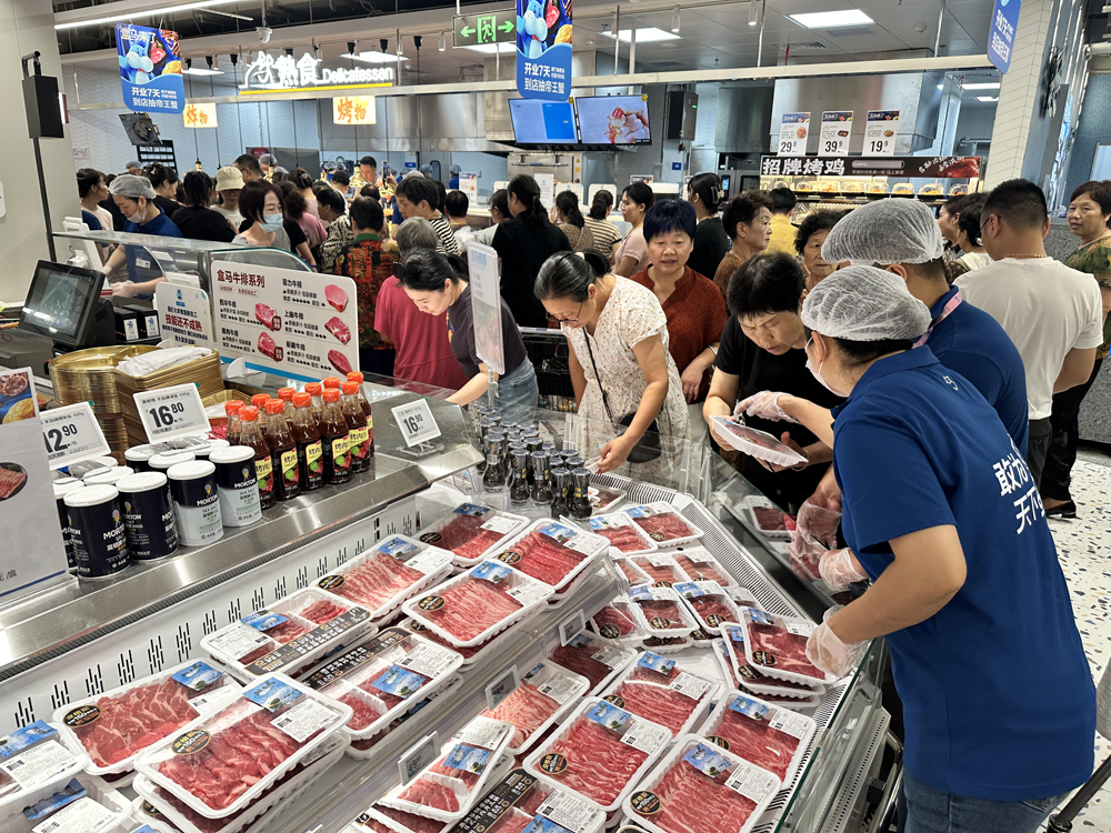 繼桐鄉(xiāng)、義烏之后,9月20日,盒馬鮮生諸暨首店在萬風(fēng)廣場(chǎng)正式開業(yè),這是盒馬在浙江布局的第5城。開業(yè)當(dāng)天,現(xiàn)場(chǎng)市民熱情高漲,為了安全,工作人員不得不臨時(shí)限流。 盒馬鮮生諸暨店經(jīng)營(yíng)面積近4000平方,經(jīng)營(yíng)品類不僅涵蓋了烘焙、海鮮水產(chǎn)、鮮切牛羊肉、果切、有機(jī)蔬菜等,還有進(jìn)口安格斯牛排、生牛乳、HPP果汁、可生食雞蛋等盒馬自有品牌商品。 雖然是新城新店,但在來逛店的市民里,有不少是盒馬的老用戶!拔矣锌战(jīng)常會(huì)跑到杭州去逛盒馬,買一些新鮮的蔬果和水產(chǎn)回來,也一直很喜歡盒馬的烘焙,F(xiàn)在開到了家門口,更方便了,能天天逛。”市民王小姐興奮地說。也有很多顧客表示是第一次來盒馬,發(fā)現(xiàn)商品很豐富,價(jià)格也不算太貴,還見到了很多“新東西”。 “從8月28日起開啟的線上試運(yùn)營(yíng)銷售來看,貓山王榴蓮千層蛋糕、瑞士卷等爆款烘焙,盒馬有機(jī)高鈣4.0牛奶、草原凝酪酸奶、石榴云霧綠茶等熱門飲品,都穩(wěn)居前列!焙旭R鮮生諸暨萬風(fēng)廣場(chǎng)店店長(zhǎng)楊濤說,“線上試營(yíng)業(yè)期間大家都傾向于網(wǎng)紅商品,但是到店的市民更圖一個(gè)新鮮,尤其是鮮切的牛羊肉。針對(duì)這個(gè)消費(fèi)特點(diǎn),新店著重?cái)U(kuò)充了鮮肉區(qū)域,還專程到潮汕請(qǐng)來了專門切牛肉的刀手! “從早上五點(diǎn)就開始切,手都切麻了!”來自潮汕的“刀手”陳樹宏表示,自己從業(yè)十年來,第一次遇到這樣的工作強(qiáng)度。 “諸暨的顧客對(duì)鮮切肉的需求很大,要求也很高,我們?cè)谇械臅r(shí)候非常精細(xì),能夠滿足消費(fèi)者涮鍋、烤肉等不同的烹飪方式!标悩浜暾f。 店長(zhǎng)楊濤表示,諸暨市民對(duì)新鮮牛羊肉的喜愛超出了預(yù)期,已經(jīng)緊急從杭州調(diào)了2位刀手現(xiàn)場(chǎng)切割,但還是供不應(yīng)求。目前正在對(duì)外緊急招聘,希望能減少用戶的排隊(duì)時(shí)間。 與通常僅有一個(gè)“鮮切肉鋪”的盒馬門店不同的是,諸暨店的“肉禽蛋”分區(qū)格外顯眼,光是冷鮮肉品就足足占據(jù)了三個(gè)島臺(tái),堪稱為“含肉量”最高門店。開業(yè)期間,店里還提供了烤羊排、羊肉湯、鹵牛肉等經(jīng)典做法的試吃,讓愛吃肉的諸暨“老饕”們大飽口福。 除了熱門的“開魚”,盒馬諸暨店開業(yè)還特別舉辦了如火如荼的“開羊”,消費(fèi)者可以選購心儀的部位,現(xiàn)場(chǎng)分切稱重,等待時(shí)也可以喝上一口現(xiàn)煮的羊湯。開店2小時(shí),2頭海門白山羊當(dāng)即售罄。 今年以來,盒馬加快了長(zhǎng)三角地區(qū)的開店節(jié)奏,浙江的桐鄉(xiāng)、義烏,江蘇的常州、揚(yáng)州,安徽蕪湖等地均迎來首家盒馬,全國盒馬門店也順勢(shì)突破400家。 為搶占十一黃金周的消費(fèi)熱潮,盒馬開店速度有增無減,除了今日開業(yè)的諸暨首店外,十一之前還會(huì)陸續(xù)在深圳、中山、北京、紹興、合肥等地新開門店,為市民旅游、返鄉(xiāng)購物增加新去處。 |