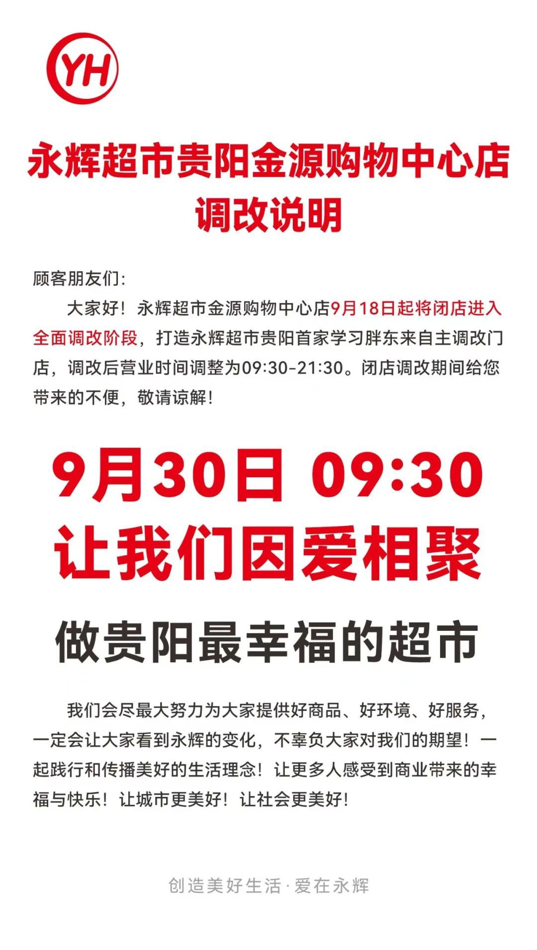 近日,永輝超市貴陽金源購物中心店宣布,自9月18日起將閉店進(jìn)行全面調(diào)改,并計劃于9月30日恢復(fù)正常營業(yè)。此次調(diào)改是貴州第一家調(diào)改門店,旨在打造永輝超市貴陽首家學(xué)習(xí)胖東來自主調(diào)改門店。 永輝超市表示,之前的企業(yè)管理和經(jīng)營理念不夠成熟,沒有給顧客帶來實實在在的商品、真誠的服務(wù)和舒適的賣場環(huán)境,也沒有為員工提供好的平臺,辜負(fù)了大家的信任。因此,永輝超市決定進(jìn)行全面調(diào)改,包括商品結(jié)構(gòu)、品質(zhì)及價格、賣場布局動線、環(huán)境、服務(wù)及員工待遇等方面。 據(jù)介紹,調(diào)改后永輝超市將保障民生需求,補充商品功能,保留一線品牌,優(yōu)選特色、質(zhì)量可靠的 商品,梳理后商品結(jié)構(gòu)達(dá)到接近胖東來商品結(jié)構(gòu)的80%,引領(lǐng)顧客對品質(zhì)、美好生活的追求; 優(yōu)化采購渠道,過濾商品價格,保證實實在在的商品定價;改善環(huán)境,調(diào)整賣場布局,增加收銀區(qū),取消原有強制動線,擴大鮮食區(qū)域,設(shè)置多處便民服務(wù)區(qū),提供安全、方便、舒適的購物環(huán)境;提高員工薪資,普通員工月薪從3400元提升至5000元及以上,工作時間平均每日不超過8小時,滿一年即可享受10天帶薪年休假,生日節(jié)日發(fā)放福利卡等。永輝超市還表示,將盡最大努力為大家提供好商品、好環(huán)境、好服務(wù),讓顧客看到永輝的變化,不負(fù)眾望。 |