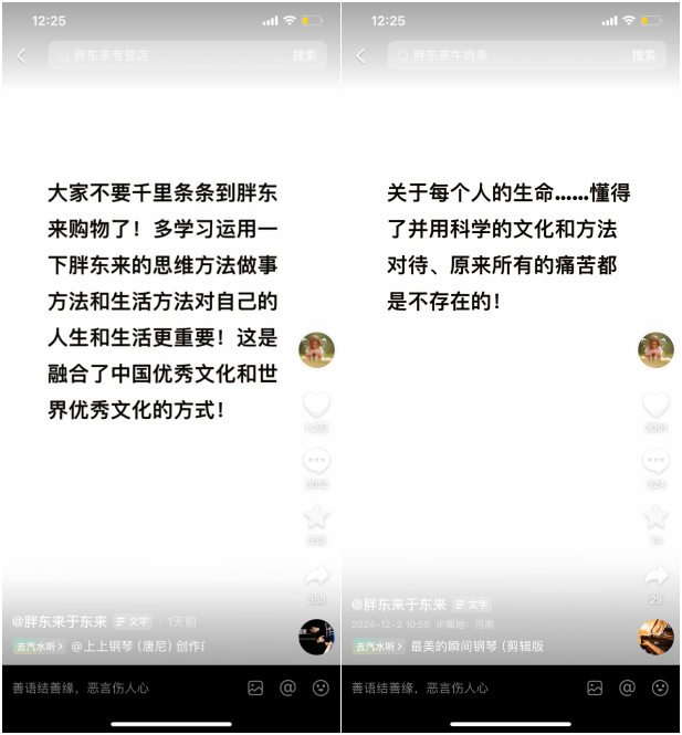 胖東來(lái)創(chuàng)始人于東來(lái)在12月2日發(fā)文建議外地朋友不要千里迢迢到胖東來(lái)購(gòu)物,而是多學(xué)習(xí)胖東來(lái)思維方法對(duì)自己生活更重要。 近期,胖東來(lái)門(mén)店人流量大、排隊(duì)時(shí)間長(zhǎng)、買東西靠搶,引起了人們的關(guān)注。此前,胖東來(lái)屢屢沖上熱搜,例如“胖東來(lái)宣布員工結(jié)婚不允許要或付彩禮”、“胖東來(lái)將不允許員工靠父母買房買車”等等。盡管胖東來(lái)方面回應(yīng),目前尚未形成規(guī)章制度,只是提前倡導(dǎo)。但是有關(guān)胖東來(lái)“新規(guī)”不合理、管得寬的爭(zhēng)議已經(jīng)鋪天蓋地。 于東來(lái)在11月23日的動(dòng)態(tài)中表示,他很喜歡按照心中追求的目標(biāo)前行、創(chuàng)造和享受品質(zhì)唯美的作品和帶領(lǐng)大家走上幸福生活的道路。 11月27日,于東來(lái)在社交媒體曬出公司2024年的經(jīng)營(yíng)情況。數(shù)據(jù)顯示,截至11月26日,胖東來(lái)集團(tuán)今年累計(jì)銷售額146.38億元。于東來(lái)在同一天的另一條動(dòng)態(tài)中表示,胖東來(lái)是一所學(xué)校而非企業(yè),它的目標(biāo)是培養(yǎng)更多人擁有健全人格、擁有個(gè)性自信、有自由精神的有獨(dú)立能力的人。 12月1日,胖東來(lái)官方微信公眾號(hào)發(fā)布聲明,表示公司未進(jìn)行任何網(wǎng)絡(luò)平臺(tái)直播帶貨,也未授權(quán)任何單位和個(gè)人代表公司進(jìn)行直播帶貨。 |