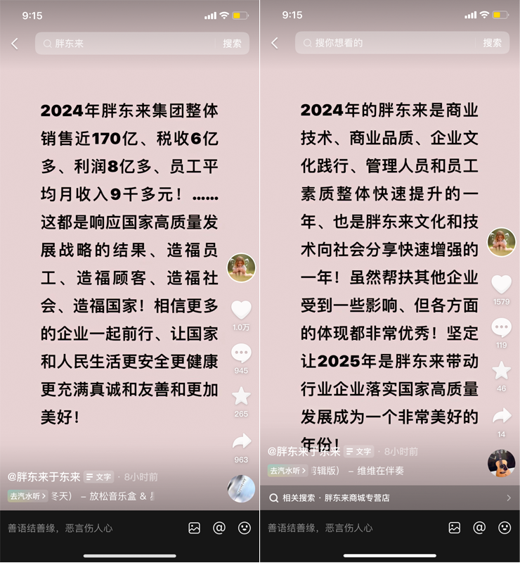 在2024年經營數據公布后,胖東來再次成為焦點。 近日,胖東來創(chuàng)始人于東來在社交平臺發(fā)文,公布了胖東來集團2024年的利潤情況,以及員工工資等備受關注的信息。 01 胖東來2024年業(yè)績飆升 同比增長超過58% 1月8日,胖東來創(chuàng)始人于東來在社交平臺發(fā)文稱,2024年胖東來集團整體銷售近170億,稅收6億多、利潤8億多,其中提到員工平均月收入9000多元。 按照許昌、新鄉(xiāng)13家經營門店測算,2024年胖東來單店盈利就達到了6153.8萬元,較2023年“全年凈利潤1.4億元,單店盈利1077萬元”的業(yè)績大幅增長。 值得關注的是,胖東來2024年的利潤水平也超過了永輝超市、大潤發(fā)、中百集團等多家零售龍頭。截至2024年前三季度,前述公司均處于虧損狀態(tài)。 進一步對比,2023年,永輝超市實現歸母凈利潤為-13.2億元、單店年度營收0.79億元;大潤發(fā)母公司高鑫零售2023財年實現營業(yè)收入836億元,凈利潤為1.09億元;ST步步高實現營收31.01億元,凈利潤為-18.89億元。 此前1月1日,胖東來創(chuàng)始人于東來發(fā)布胖東來商貿集團2024年銷售數據。胖東來商貿集團2024年全年累計銷售169.64億元(許昌、新鄉(xiāng)兩地),12月單月集團累計銷售20.41億元。 具體業(yè)態(tài)銷售情況,超市銷售額最高,其中許昌店全年超市銷售額為59.45億元,新鄉(xiāng)店超市全年銷售額為21.49億元。許昌新鄉(xiāng)兩地的百貨業(yè)態(tài)全年銷售額為23.40億元,服飾為14.84億元,電器為21.02億元,茶葉2024年全年銷售6.19億元。此外,許昌店珠寶類全年銷售額為15.46億元。15個銷售場所中時代廣場營業(yè)額最高,全年達到44.14億元。 據了解,2023年胖東來集團銷售107億,利潤1.4億。以此計算,胖東來2024年銷售額同比增長超過58%,利潤增長率超過470%。值得一提的是,于東來每年都會將大部分利潤拿出來分給員工,最多一次拿出了當年利潤的95%。 于東來表示:這都是響應國家高質量發(fā)展戰(zhàn)略的結果,造福員工、造福顧客、造福社會、造福國家,相信更多的企業(yè)一起前行,讓國家和人民生活更安全、更健康、更充滿真誠和友善和更加美好。 02 員工福利優(yōu)越 引網友熱議 胖東來此次公開2024年度的銷售額、稅收、利潤及員工平均月收入,迅速引發(fā)了網友們的熱議。 網友1:“不眼紅胖東來掙了多少錢,但是這員工工資真是令人羨慕!” 網友2:“工資除五險一金可以拿到9000很厲害了” 網友3:“如果是稅后,這工資著實讓人羨慕啊,小城市,高工資,短上班時間,挺好” 網友4:“良心企業(yè),得民心者得天下” 網友5:“有溫度的企業(yè)家” 網友6:“凈利潤五個點,還是可以的。好多商超都關門歇業(yè)了” 網友7:“我也想到胖東來上班……” 網友8:“胖東來不愧是打工人心目中的‘夢中情司!’” 事實上,胖東來一直以來都以優(yōu)質的商品、良好的信譽、貼心的服務以及令人艷羨的員工福利而備受關注。例如,胖東來每周二都會閉店休息,春節(jié)期間全體員工放假5天。 此外,胖東來還為員工設立了“委屈獎”等福利,并提供帶薪旅游、生日派對、集體婚禮等諸多福利。員工的假期也長達每年150天到180天左右。 于東來曾在視頻中透露,胖東來員工的工資在持續(xù)上漲中,扣除社保后最低收入7600多元,員工工資普遍在8000元以上,而且還會持續(xù)上漲,“會一直漲,因為我們也沒敢發(fā)太多……” 在《美好之路》一書中,于東來也透露了胖東來員工薪酬體系,店長月薪5萬元,店助4萬元,處長2.5萬元,處長助理1.8萬元,課長1.2-1.3萬元,一線員工(保潔、收銀等)平均月工資為5500元。此外,每名員工每周工作時長是40-42小時,一年還有一個月帶薪年假。 最后, 胖東來的成功不僅體現在銷售額和利潤上,更體現在其對員工的關懷和福利上。這種以人為本的經營理念不僅贏得了員工的忠誠和熱愛,也贏得了廣大消費者的認可和信賴。 然而,在商超行業(yè)整體不景氣的大背景下,胖東來的成功也顯得尤為珍貴。 據了解,2025年1月1日,阿里清空了大潤發(fā)母公司高鑫零售的全部股份;而胖東來“爆改”中的永輝超市2024年前三季度營收約545.49億元,但歸母凈利潤為虧損0.78億元。 不過正如于東來所言,“相信更多的企業(yè)一起前行、讓國家和人民生活更安全更健康更充滿真誠和友善和更加美好!”目前已經有越來越多的商超或實體企業(yè)向胖東來看齊,持續(xù)自主調改中。 例如,永輝超市表示,未來將繼續(xù)開展系統(tǒng)性的轉型工作,持續(xù)派遣員工前往河南胖東來學習,同時進一步擴大調改范圍,永輝通過標桿門店調改,逐步提升商品品質和服務。 |