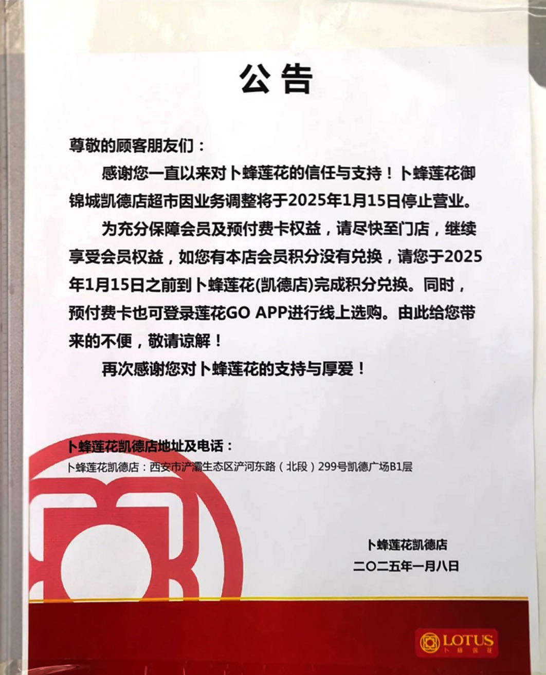 在零售行業(yè)競爭加劇、消費者行為不斷變化的背景下,老牌外資超市卜蜂蓮花近日宣布關(guān)閉其在西安的最后一家門店,此舉標志著該品牌全面退出西安市場,同時也引發(fā)了業(yè)界的廣泛關(guān)注。 01 撤離西安市場 1月15日,卜蜂蓮花超市在西安的最后一家門店——凱德廣場店正式停止營業(yè),標志著該品牌全面退出西安市場。 圖來源:悅西安。 早在1月8日,位于西安御錦路上的卜蜂蓮花凱德廣場店貼出公告,稱卜蜂蓮花御錦城凱德店超市因為業(yè)務(wù)調(diào)整,于2025年1月15日停止營業(yè)。 對于積分和預(yù)付費卡的處理,公告提醒顧客需盡快至門店完成積分兌換,預(yù)付費卡則可登錄蓮花GO APP進行線上選購。 1月14日晚,《華商報大風(fēng)財經(jīng)》記者致電卜蜂蓮花凱德店了解到,該店是目前卜蜂蓮花超市在西安市場的最后一家門店,1月15日是超市最后一天營業(yè)。 該店閉店似乎早有預(yù)兆,早在2024年12月初,就有網(wǎng)友反饋,“該店已貨架空空”。 卜蜂蓮花在西安的撤退并非突然。2024年,其在全國范圍內(nèi)的門店數(shù)量就在不斷縮減。根據(jù)CCFA數(shù)據(jù)顯示,卜蜂蓮花在2023年的門店總數(shù)已縮減至119個,相較于2022年的142個,減少了23家。 在西安,繼2024年3月31日唐延路店停業(yè)后,鳳城八路新天地店、長和國際店與長纓路店也相繼暫停營業(yè)。此番隨著凱德店的閉店,卜蜂蓮花在西安的門店全部關(guān)閉。 此外,卜蜂蓮花在其他城市的門店也面臨關(guān)閉。2024年3月31日,卜蜂蓮花在河南鄭州的最后一家門店停業(yè);4月16日,山東青島的卜蜂蓮花遼陽西路店發(fā)布閉店通知;6月29日,廣東揭陽的卜蜂蓮花揭陽榕城店也宣布閉店。 首都經(jīng)濟貿(mào)易大學(xué)教授陳立平指出,卜蜂蓮花的關(guān)店現(xiàn)象反映了大賣場業(yè)態(tài)的衰退趨勢。他解釋說,消費行為的變化和線上購物的分流導(dǎo)致大賣場盈利能力下降,同時商品陳舊、價格較高也是被消費者拋棄的原因之一。 02 積極探索轉(zhuǎn)型新方向 面對西安市場的撤退,卜蜂蓮花并未止步不前,而是積極尋求轉(zhuǎn)型和升級的新路徑。 卜蜂蓮花(原稱“易初蓮花”)是最早一批進入中國的外資超市品牌,隸屬于正大集團。該品牌于1997年6月23日在上海開設(shè)了其在國內(nèi)的首家門店,標志著它正式踏入中國市場。 此前,卜蜂蓮花曾名為“易初蓮花”,這一名稱源自正大集團的創(chuàng)始人謝易初。2007年起,全國各地的易初蓮花超市陸續(xù)更名為“卜蜂蓮花”。2010年,卜蜂蓮花在香港交易所上市,巔峰時期門店數(shù)量曾超過152家。 隨著消費場景的深刻轉(zhuǎn)變,卜蜂蓮花這種“大賣場模式”逐漸被市場拋棄。2012年到2018年期間,卜蜂蓮花僅在2017年實現(xiàn)了盈利,其余的時候都是虧損,卜蜂蓮花股票亦于2019年退市。 在經(jīng)歷困境的同時,卜蜂蓮花也在積極尋求轉(zhuǎn)型和升級,以適應(yīng)市場的變化。例如在汕頭和長沙等地,卜蜂蓮花進行了門店調(diào)改升級,重新調(diào)整賣場布局、優(yōu)化商品結(jié)構(gòu)、提升服務(wù)品質(zhì)。 2024年11月18日,汕頭卜蜂蓮花金平中旅店經(jīng)過一個月有余的時間調(diào)改,重新開業(yè),相關(guān)媒體報道,開業(yè)三天便吸引超12萬市民關(guān)注,其中消費客流達4萬人,累計營業(yè)額近300萬元,較調(diào)改前提升六倍。湖南卜蜂蓮花第二家調(diào)改店——凱德壹中心店經(jīng)過51天調(diào)改,于2024年11月8日開業(yè),銷售額顯著提升。 此外,卜蜂蓮花北京通州店于2024年12月24日正式動工改造,預(yù)計2025年5月份回歸,該店則將轉(zhuǎn)型為綜合性社區(qū)Mall,定位為“家門口的美食地標”。改造后將引入星巴克、霸王茶姬、肯德基等知名品牌,涵蓋餐飲、兒童娛樂、電影等多種業(yè)態(tài),旨在打造“鄰里生活空間”與“家門口的美食地標”。 同時,卜蜂蓮花還和美團合作,布局24小時快送倉,以滿足消費者的即時消費需求,據(jù)了解,其開設(shè)的數(shù)個閃電倉“24小時快送超市”均已實現(xiàn)盈利,這也堅定了卜蜂蓮花未來繼續(xù)拓展該業(yè)務(wù)的信心。 行業(yè)人士分析指出,在零售市場洗牌的大背景下,傳統(tǒng)超市企業(yè)想要重新贏得消費者的青睞,就必須在軟服務(wù)、硬件設(shè)施等方面進行全面升級,為消費者帶來更加優(yōu)質(zhì)的購物體驗。 通過門店調(diào)改、優(yōu)化商品結(jié)構(gòu)、提升服務(wù)品質(zhì)以及探索新業(yè)務(wù)模式等方式,卜蜂蓮花正在逐步找回其在零售市場的地位。這表明,在當前零售行業(yè)環(huán)境下,雖然大賣場模式已過時,但通過不斷的調(diào)改和創(chuàng)新,企業(yè)仍然有機會在市場上獲得一席之地。 最后, 近年來,中國超市行業(yè)的整體收縮趨勢明顯,卜蜂蓮花的戰(zhàn)略調(diào)整只是這一行業(yè)變革的縮影。 根據(jù)CCFA發(fā)布的數(shù)據(jù),2019年至2023年間,中國超市百強銷售規(guī)模從9792億元下降至8680億元,門店總數(shù)也從2.6萬家減少至2.38萬家。然而,這一行業(yè)的整體收縮并不意味著其成長空間受限。相反,新模式的加入正為行業(yè)帶來新的生機與活力。 在全國各地市場,新舊業(yè)態(tài)正在加速分化。消費和市場需求的變化推動著業(yè)態(tài)的變革,這也倒逼商超從業(yè)者在服務(wù)、產(chǎn