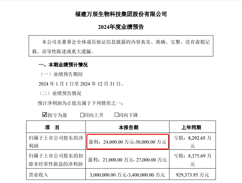 1月24日,作為量販零食業(yè)態(tài)中唯一一家上市企業(yè)的萬辰集團(tuán)發(fā)布2024年度業(yè)績預(yù)告。 經(jīng)公司財務(wù)部門初步核算,萬辰集團(tuán)預(yù)計2024年實現(xiàn)營收300億元至340億元,上年同期為92.94億元;實現(xiàn)歸屬凈利潤2.4億元至3億元,上年同期為虧損8292.65萬元;預(yù)計實現(xiàn)扣非凈利潤2.1億元至2.7億元,上年同期為虧損8375.69萬元。 萬辰集團(tuán)2024年業(yè)績預(yù)告公告截圖 萬辰集團(tuán)在公告中表示,2024年公司持續(xù)累積運(yùn)營經(jīng)驗和優(yōu)勢,門店數(shù)量較上年同期實現(xiàn)大幅增長,對應(yīng)營業(yè)收入同比大幅度增長,旗下“好想來品牌零食”已成為全國知名連鎖品牌。2024年量販零食業(yè)務(wù)預(yù)計實現(xiàn)營業(yè)收入300億元-330億元,同比增長242.50%-276.75%。 |