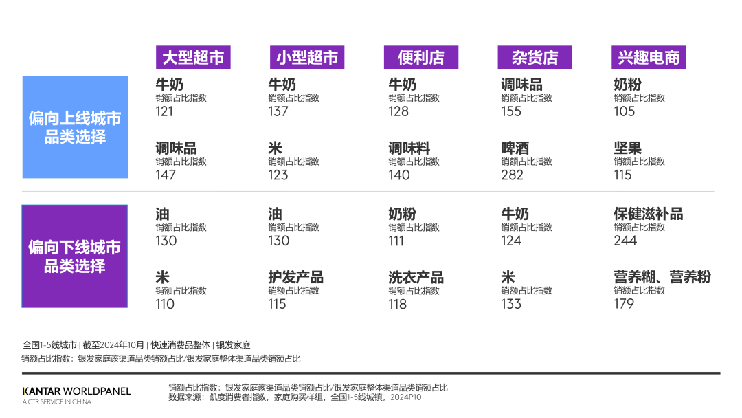 凱度消費者指數(shù)家庭樣組數(shù)據(jù)所示,線下渠道是銀發(fā)家庭的主要購買渠道。其在線下渠道的花費占比超過50%,且增速超10%。除大賣場外,其他線下渠道類型都有不同程度的顯著增長。針對銀發(fā)族布局的線下購物體驗感,將成為各渠道商進(jìn)一步占領(lǐng)這類群體心智的核心要素。銀發(fā)族在各渠道的品類購買也有一定的差異。但無論是上線城市銀發(fā)家庭,還是下線城市的銀發(fā)家庭都會在超市、便利店和雜貨店選擇購買如米、調(diào)味料、油、牛奶等日常剛需品類。 值得一提的是,根據(jù)凱度消費者指數(shù)家庭樣組數(shù)據(jù)顯示,近四成的銀發(fā)家庭已經(jīng)開始利用興趣電商平臺進(jìn)行快速消費品的購買。抖音和快手對銀發(fā)家庭的影響力也在日益增加。 |