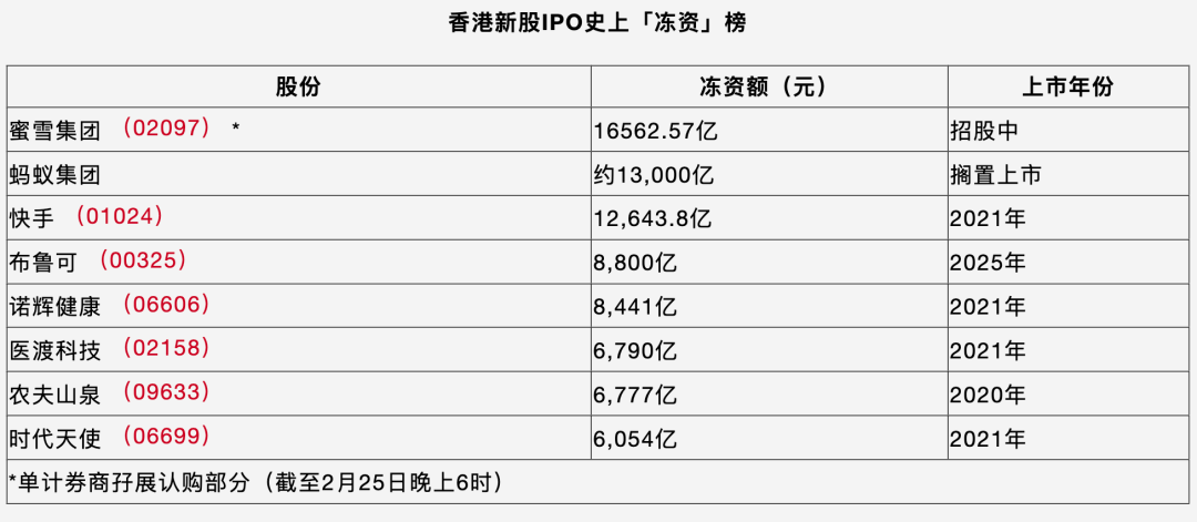 經(jīng)營茶飲“蜜雪冰城”的蜜雪集團(tuán)在2月21日至26日招股,部分券商再以100倍以上“免銀行融資利息”孖展杠桿吸引投資者認(rèn)購。截至26日早上11時,蜜雪集團(tuán)已錄得至少1.79萬億元孖展。以蜜雪集團(tuán)起始公開發(fā)售額3.45億元計,超購5188倍。 另據(jù)外電,蜜雪集團(tuán)國際配售同樣火熱,承銷團(tuán)隊擬提前一日在周二下午5時結(jié)束建簿,并形容有長倉基金、主權(quán)基金入場。蜜雪集團(tuán)孖展認(rèn)購金額已足以媲美過去港股IPO的“凍資王”。2021年初,快手公開認(rèn)購金額達(dá)12643億港元,而2020年招股的螞蟻集團(tuán)傳出凍資額達(dá)1.3萬億港元,不過當(dāng)時螞蟻集團(tuán)臨近上市前擱置計劃。(香港經(jīng)濟(jì)日報) |