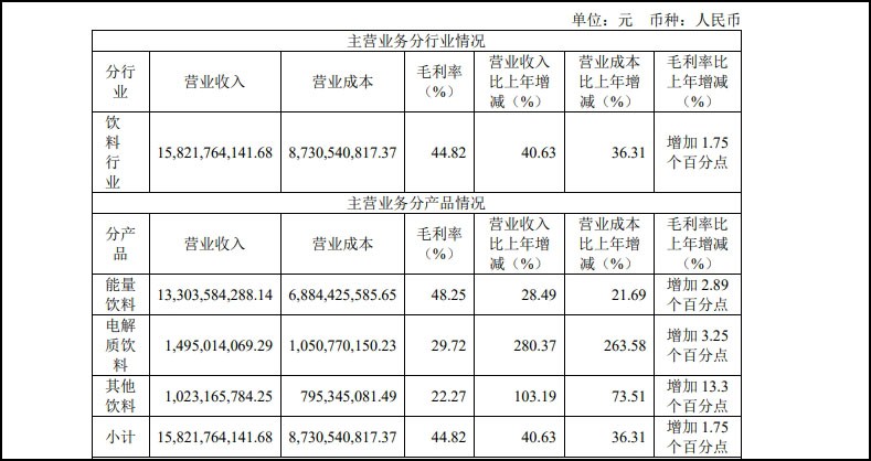 3月7日,東鵬飲料發(fā)布2024年年度報告,公司營收158.39億元,同比增長40.63%;歸屬于上市公司股東的凈利潤33.27億元,同比增長63.09%。公司方面表示,這一成績主要得益于報告期內(nèi)銷售規(guī)模和效益的高速發(fā)展。 從產(chǎn)品板塊來看,東鵬飲料主要分為能量飲料、電解質(zhì)飲料和其他飲料三大板塊。其中,能量飲料在2024年營收達到133.04億元,占比超過八成,毛利率高達48.25%,居產(chǎn)品線首位。這一板塊毛利率較去年增加了2.89%,主要得益于原材料價格下降,使得產(chǎn)品成本降低。 值得注意的是,電解質(zhì)飲料成為東鵬飲料增長最快的細分品類,2024年營收同比增長280.37%。這一高速增長顯示出公司在產(chǎn)品多元化方面的潛力和市場適應(yīng)能力。 在市場區(qū)域方面,東鵬飲料的主要銷售區(qū)域涵蓋了廣東、華東、華中、華北、廣西及西南等市場,合計收入占比約84.50%。其中,廣東區(qū)域依然是收入最高的區(qū)域,2024年實現(xiàn)營業(yè)收入43.60億元,同比增長15.93%,營收占比為27.56%。 然而,隨著全國化戰(zhàn)略的推進,廣東以外區(qū)域的占比正在逐漸上升。華北區(qū)域和西南區(qū)域的收入增長尤為迅猛,增長率分別達到83.85%和54.65%,高于全國區(qū)域的增長率。這主要得益于公司通過夯實業(yè)務(wù)基礎(chǔ)、完善經(jīng)銷體系、開拓終端網(wǎng)點、加強終端陳列及把握新消費機會等方式,有效促進了銷量的快速增長。 東鵬飲料的核心產(chǎn)品東鵬特飲在2024年繼續(xù)在市場上表現(xiàn)出色。根據(jù)尼爾森IQ數(shù)據(jù),東鵬特飲在中國能量飲料市場的銷售量占比從2023年的43.0%提升至47.9%,連續(xù)四年成為中國銷售量最高的能量飲料;銷售額份額也從30.9%上升至34.9%。這進一步鞏固了東鵬特飲在能量飲料領(lǐng)域的領(lǐng)先地位。 在謀求國內(nèi)區(qū)域結(jié)構(gòu)優(yōu)化的同時,東鵬飲料也在積極開拓國際市場,東南亞市場是其重點發(fā)力方向。財報顯示,截至2024年末,東鵬飲料的產(chǎn)品已出口至越南、馬來西亞、美國等25個國家和地區(qū)。公司已在印度尼西亞和越南設(shè)立子公司,并且正在建設(shè)中的海南和昆明生產(chǎn)基地將作為未來面向東南亞市場的重要生產(chǎn)及出口樞紐。 值得注意的是,在營利增長的同時,東鵬飲料2024年的銷售費用也有所上升,較去年同期增長37.09%。公司解釋稱,這主要是由于職工薪酬支出增加24.77%、廣告宣傳費增長54.45%以及渠道推廣費增長54.03%所致。這些增加的費用主要用于推進全國化戰(zhàn)略實施,擴大銷售規(guī)模,增加銷售人員人數(shù),加大宣傳和渠道推廣投入,尤其是冰柜的投放。 財報還指出,2024年公司不斷優(yōu)化產(chǎn)品結(jié)構(gòu)和客戶結(jié)構(gòu),積極加強開拓全國市場傳統(tǒng)渠道,進一步提升產(chǎn)品的整體鋪市率與覆蓋廣度;同時打造多品類產(chǎn)品線,滿足不同場景及人群需求,推出差異化產(chǎn)品,拓展消費者群體,并通過線上線下多維度推廣,持續(xù)贏得消費者信賴與復(fù)購,從而實現(xiàn)了銷售收入的顯著增長。 同日,東鵬飲料還發(fā)布公告稱,公司擬發(fā)行H股股票并在香港聯(lián)合交易所有限公司主板掛牌上市。目前,公司正與相關(guān)中介機構(gòu)就本次發(fā)行并上市的相關(guān)工作進行商討。此次擬赴港上市,東鵬飲料表示,旨在進一步提高公司的資本實力和綜合競爭力,提升公司國際化品牌形象,滿足國際業(yè)務(wù)發(fā)展需要,深入推進全球化戰(zhàn)略。 |