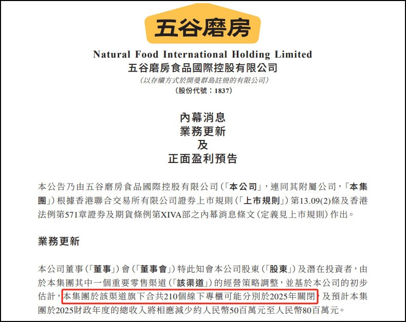 3月11日,五谷磨房公告,預(yù)期截至去年底年度純利介乎1.8億元至1.94 億元,同比增長18%至28%,主要得益于業(yè)務(wù)戰(zhàn)略有效實(shí)施和成本控制。但因重要零售渠道經(jīng)營策略調(diào)整,2025年該公司旗下210個(gè)線下專柜可能關(guān)閉,預(yù)計(jì)該財(cái)年總收入減少5000萬元至8000萬元 。(公司公告) |