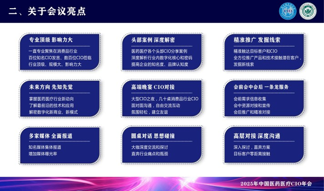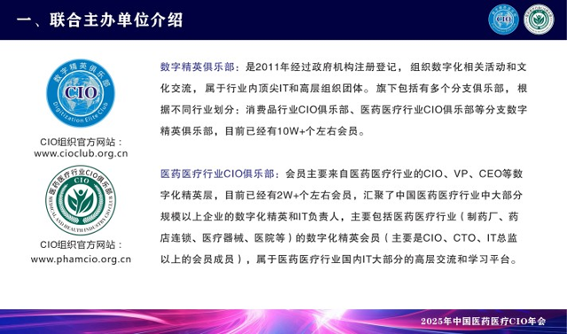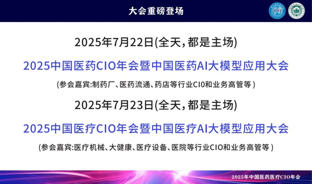 CGCA 2025來了,作為國內(nèi)唯一 一家專注醫(yī)藥醫(yī)療行業(yè)聚焦CIO的主辦方,一直為品牌方CIO和行業(yè)信息化提供商打造高質(zhì)量、高效溝通的峰會。 CGCA目前已成功舉辦多屆,歷屆會議吸引了無數(shù)知名企業(yè)的CIO參與,是中國醫(yī)藥醫(yī)療行業(yè)級別高、規(guī)模大、極具影響力的CIO盛會。 主辦方介紹:數(shù)字精英俱樂部,是2011年經(jīng)過政府機(jī)構(gòu)注冊登記,組織數(shù)字化相關(guān)活動(dòng)和文化交流,屬于行業(yè)內(nèi)頂尖IT和高層組織團(tuán)體。旗下包括有多個(gè)分支俱樂部,根據(jù)不同行業(yè)劃分:消費(fèi)品行業(yè)CIO俱樂部、醫(yī)藥醫(yī)療行業(yè)CIO俱樂部、新能源行業(yè)CIO俱樂部、裝備制造行業(yè)CIO俱樂部等分支數(shù)字精英俱樂部,目前已經(jīng)有60W+個(gè)左右會員。 醫(yī)藥醫(yī)療行業(yè)CIO俱樂部:會員主要來自醫(yī)藥醫(yī)療行業(yè)的CIO、VP、CEO等數(shù)字化精英層,目前已經(jīng)有2W+個(gè)左右會員,匯聚了中國醫(yī)藥醫(yī)療行業(yè)中大部分規(guī)模以上企業(yè)的數(shù)字化精英和IT負(fù)責(zé)人,主要包括醫(yī)藥醫(yī)療行業(yè)(制藥廠、藥店連鎖、醫(yī)療器械、醫(yī)院等)的數(shù)字化精英會員(主要是CIO、CTO、IT總監(jiān)以上的會員成員),屬于醫(yī)藥醫(yī)療行業(yè)國內(nèi)IT大部分的高層交流和學(xué)習(xí)平臺。 會議介紹: 2025中國醫(yī)藥CIO年會暨中國醫(yī)藥AI大模型應(yīng)用大會,相約2025年7月22日在廣州召開,以“智能 創(chuàng)新 轉(zhuǎn)型”為主題,將邀請600+CIO嘉賓、優(yōu)質(zhì)信息科技展商、行業(yè)知名媒體,百位頭部CIO同臺發(fā)言,現(xiàn)場將展示大量極具創(chuàng)新力的產(chǎn)品、優(yōu)秀案例、技術(shù)、解決方案等,力求推動(dòng)行業(yè)創(chuàng)新發(fā)展,展望消費(fèi)品企業(yè)數(shù)字化未來。 組織官網(wǎng)網(wǎng)站:www.cioclub.org.cn AI大模型時(shí)代已來!讓我們一起乘風(fēng)破浪! |