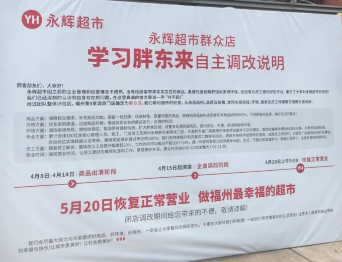 4月7日消息,福州永輝超市群眾店即將啟動自主調(diào)改,成為福州第九家進行胖東來式調(diào)改的門店。 此次調(diào)改將從商品結(jié)構(gòu)、品質(zhì)及價格賣場布局動線、環(huán)境、服務及員工待遇等方面做全面調(diào)改,旨在提升顧客體驗和員工福利,以適應市場變化和消費者需求。 此次調(diào)改,4月8日至4月14日為商品出清階段4月15日起閉店進入全面調(diào)改階段,預計于今年5月20日恢復正常營業(yè)。 據(jù)了解,永輝福州群眾店位于臺江區(qū)群眾路104號,群眾路小學附近,距離福州地鐵1號線茶亭站A口200米左右,周圍巨虎比較密集;該店于2004年7月23日開業(yè),是一家開業(yè)超過二十年的老店,店面不是特別大。 永輝超市官網(wǎng)查詢獲悉,截至4月7日福州的永輝門店有50家,福建省內(nèi)共有113家門店,全國共有726家門店。 |