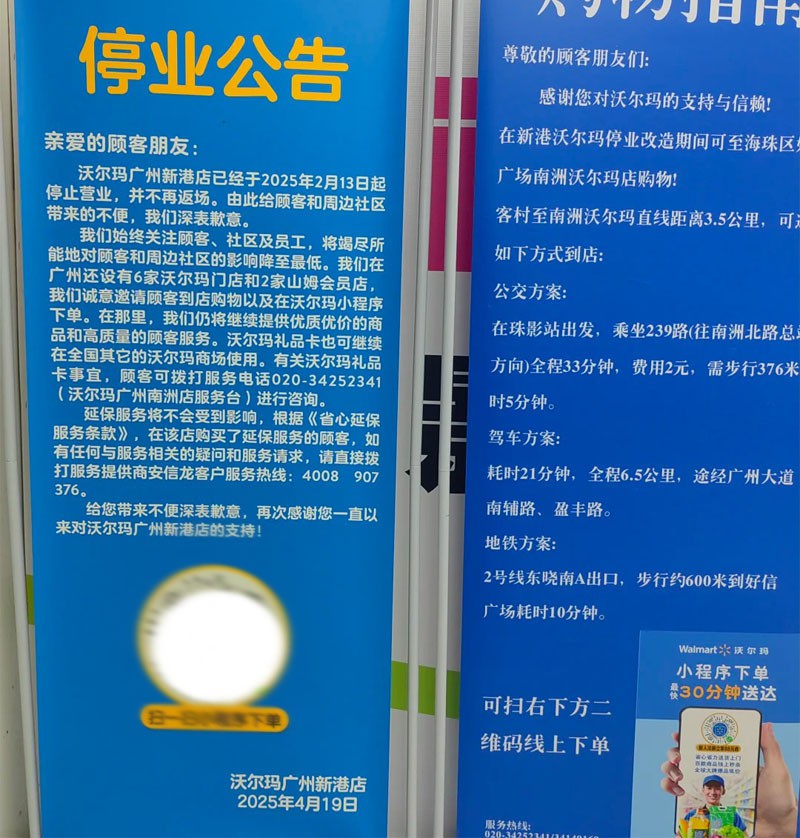 4月19日,沃爾瑪廣州新港店再次發(fā)布停業(yè)公告,確認該店已于2月13日正式停止營業(yè),并且不再重新開業(yè)。 此前,2月份的停業(yè)公告曾提到,短暫停業(yè)是由于商圈整體改造。當時,工作人員表示,改造完成后,是否繼續(xù)合作以及合作方式將與商場產(chǎn)權人進行磋商。改造期間,門店將關閉進行裝修,預計10月份左右重新營業(yè)。然而,最新的公告表明,該店將不再返場。 |