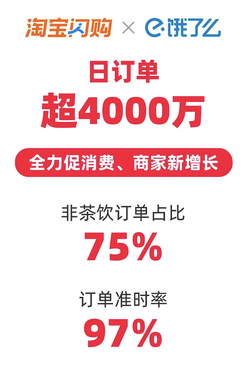 5月26日下午消息,淘寶閃購聯(lián)合餓了么宣布,日訂單數(shù)已超4000萬。此時距淘寶閃購正式上線,不到一個月。 5月2日,淘寶閃購正式上線,聯(lián)動餓了么的供給和履約能力,形成阿里即時零售一張大圖,全力促進消費市場熱度,同時給中小商家?guī)バ碌脑鲩L機會。數(shù)據(jù)顯示,目前淘寶閃購的訂單結構已向全品類大幅拓展,非茶飲占比達75%,非餐品類訂單增長遠超預期。 訂單量高速增長的同時,淘寶閃購也保障了高質量履約水平,訂單準時率達97%。目前,淘寶閃購零售品類在時效上可做到3公里以內(nèi)訂單30分鐘基本全覆蓋,醫(yī)藥類履約時長平均已可以做到28分鐘內(nèi)。 此前,阿里巴巴2025財年Q4及全年財報業(yè)績會也透露,淘寶閃購無論在規(guī)模增長還是效率提升上均超出預期。管理層還透露了淘寶閃購的短期策略和目標,即重點投資新用戶、讓更多淘寶用戶轉變?yōu)榧磿r零售用戶。從長期看,淘寶閃購將在用戶活躍度、用戶規(guī)模等多方面給淘寶帶來好處,且能夠看到遠場近場電商結合、基于閃購業(yè)務升級商業(yè)模式的可能性。 |