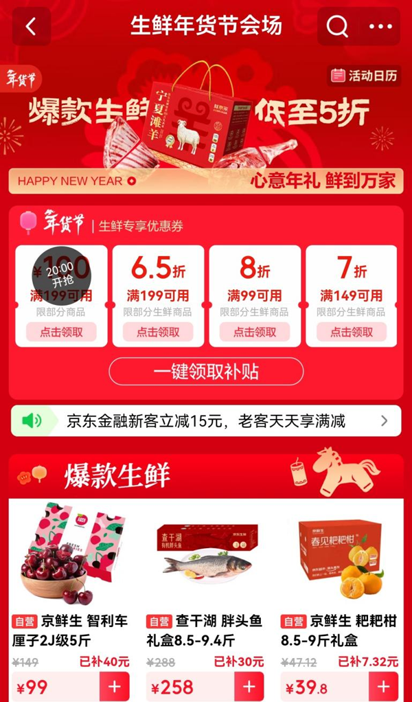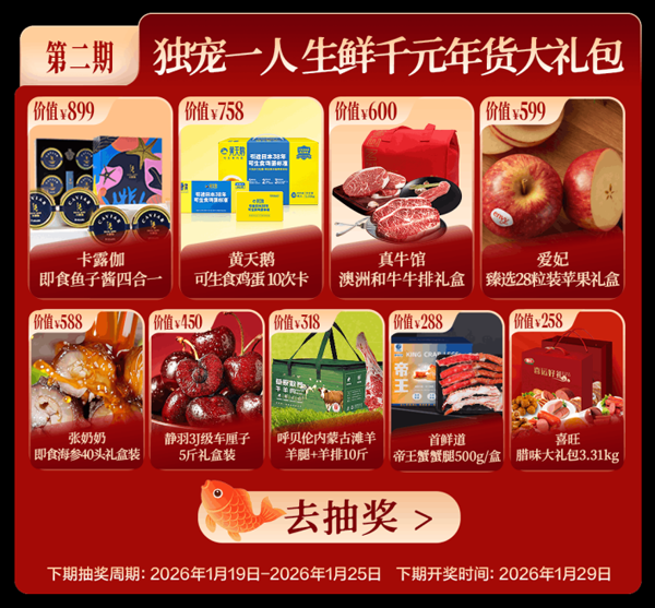 俗話說“過了臘八就是年”,熱氣騰騰的臘八粥為餐桌增添了團(tuán)圓的味道,也點(diǎn)燃了家家戶戶籌備新年的熱情。1月25日晚8點(diǎn),伴隨著越來越濃的年味兒,京東生鮮年貨節(jié)正式開啟,圍繞“心意年禮、鮮到萬家”主題,推出多項(xiàng)驚喜福利,不僅有“滿99打8折,滿199打6.5折”優(yōu)惠,爆款生鮮低至5折,爆款禮盒“滿299減50”,更有千元生鮮年貨大禮包抽獎(jiǎng)活動(dòng),以及1元搶大龍燚蝦滑、思念柿柿如意湯圓、叮叮懶人菜雙蛋白藜麥雞排等。 從時(shí)令果蔬、海鮮水產(chǎn)、肉禽蛋到方便速食,種類豐富、高質(zhì)價(jià)比的生鮮好物齊登場(chǎng),為上京東辦年貨的消費(fèi)者帶來實(shí)實(shí)在在的新年驚喜。活動(dòng)期間,消費(fèi)者打開京東APP,搜索“京東生鮮年貨節(jié)”即可直達(dá)線上年貨大集,把“又好又便宜”的“心意年禮”帶回家。 每周抽取“年貨錦鯉”,千元禮包賀新春開門紅 今年,從“湘超”到“央超”,綠茵賽事在引爆全網(wǎng)熱情的同時(shí),也走進(jìn)了京東生鮮的直播間。1月24日晚,2026年CMG群眾足球邀請(qǐng)賽迎來最終對(duì)決,賽場(chǎng)上,廣東湛江隊(duì)與戰(zhàn)勝東道主湖南永州隊(duì)展開了一場(chǎng)精彩的雙雄爭(zhēng)霸,賽場(chǎng)外,京東生鮮與永州市政府展開深度共建,通過“品永州美食 觀綠茵對(duì)決”的助農(nóng)新路徑,讓永州的雞樅菌、虎爪姜、杏鮑菇、香柚、山雞蛋等特色農(nóng)產(chǎn)品從山村田間直達(dá)千家萬戶,不少消費(fèi)者通過京東生鮮“永湘甄選官方旗艦店”,品嘗到了來自永州的地道風(fēng)味。 足球賽點(diǎn)燃了冬日的熱情,臘八節(jié)緊隨其后,再次引燃了新一輪的消費(fèi)熱情。1月25日晚8點(diǎn),京東生鮮年貨節(jié)“搶鮮”開啟,用高品質(zhì)、全品類生鮮盛宴接檔賽事,從寧夏灘羊、云南黑松露、海南哈密瓜、福州金湯佛跳墻,到智利車?yán)遄印⑻﹪鹫砹裆、厄瓜多爾白蝦、俄羅斯帝王蟹……“又好又便宜”的生鮮年貨低至5折優(yōu)惠,還有1元搶、抽獎(jiǎng)等多重福利,把冬日消費(fèi)熱情推向另一個(gè)高潮。 年貨節(jié)期間,京東生鮮每周抽取一位“年貨錦鯉”,免費(fèi)送上價(jià)值千元的年貨大禮包,為新春佳節(jié)添福氣。消費(fèi)者購買京東生鮮推出的年貨禮盒后,掃描禮盒腰封二維碼或搜索“碼上搶鮮”進(jìn)入禮盒會(huì)場(chǎng)報(bào)名,即可參與抽獎(jiǎng)。目前,第二波抽獎(jiǎng)活動(dòng)正在火熱進(jìn)行中,10斤的內(nèi)蒙古灘羊羊腿+羊排、3.31kg臘味大禮包、500g帝王蟹蟹腿、40只即食海參、3J級(jí)車?yán)遄、即食魚子醬等生鮮好禮,將在1月29日揭曉,歡迎廣大消費(fèi)者來京東生鮮“接好運(yùn)”。 作為走親訪友饋贈(zèng)佳品,京東生鮮禮盒全方位滿足多元化消費(fèi)需求,涵蓋高品質(zhì)鮮果、水產(chǎn)、牛羊肉等豐富品類,其中不乏5J級(jí)智利車?yán)遄、泰國金枕榴蓮、菲力整切牛排、灘羊、帝王蟹、佛跳墻等熱門年貨選擇。消費(fèi)者選購10.5斤裝的金唐海鮮禮盒大禮包,不僅能一次買齊東星斑、鮑魚、大蝦等10種海鮮“硬貨”,還能獲贈(zèng)限量精美的馬年金鈔,在大飽口福的同時(shí)添個(gè)“馬到成功”的好彩頭。 滿載“年年有余”美好祝愿的查干湖魚年貨禮盒,更是今年的必購清單。京東源頭包銷的查干湖冬捕有機(jī)胖頭魚通過“一魚一碼”正品溯源體系,為每一條魚筑牢品質(zhì)護(hù)城河,從查干湖核心產(chǎn)區(qū)到消費(fèi)者年夜飯餐桌,最快可次晨達(dá),全程冷鏈鎖住新鮮,把肥美鮮嫩、鮮香可口的天然美味原樣送到天南海北。值得一提的是,爆款禮盒參與“滿299減50”優(yōu)惠活動(dòng),讓消費(fèi)者買得更加省心、開心。 “又好又便宜”,京東超級(jí)供應(yīng)鏈為生鮮年貨保駕護(hù)航 眾多高性價(jià)比年貨背后,是京東生鮮超級(jí)供應(yīng)鏈在源頭包銷、定植定養(yǎng)與海外直采等方面的持續(xù)探索。過去一年,京東生鮮深耕源頭,在業(yè)內(nèi)率先推出“包圓”模式,通過源頭包銷、源頭直采、源頭直發(fā)等方式,為消費(fèi)者帶來“又好又便宜”的生鮮商品。同時(shí),京東生鮮積極走向供應(yīng)鏈的最前端,通過對(duì)消費(fèi)需求的精準(zhǔn)洞察,反向推動(dòng)合作基地進(jìn)行定植定養(yǎng),讓產(chǎn)業(yè)端實(shí)現(xiàn)“按需生產(chǎn)”,獲得更確定性的增長,同時(shí)為消費(fèi)者帶來更豐富的差異化供給,在廣東清遠(yuǎn)、河北武邑等地成功落地“跑步雞”“跑山豬”等項(xiàng)目。在海外直采方面,通過專業(yè)買手直連海外產(chǎn)地,實(shí)現(xiàn)成本與品質(zhì)的直接管控,讓澳洲鮮活皇帝蟹、冰島海參、大西洋真鱈、塔斯馬尼亞車?yán)遄拥雀嘈缕嫣氐娜蚝梦铮材堋磅r”達(dá)中國消費(fèi)者的餐桌。 有了京東生鮮超級(jí)供應(yīng)鏈的強(qiáng)力支撐,今年年貨節(jié),京東生鮮帶來了眾多健康、安心、又好又便宜的全球生鮮美味。安井黃金蝴蝶蝦、黑椒牛仔骨,天海藏金湯佛跳墻、10參10鮑大盆菜等多款美食只需5折。 時(shí)令果鮮是年貨清單上的重要一環(huán)。冬季“頂流”水果四川耙耙柑,果肉飽滿多汁、味道酸甜適口,從四川樂山、眉山等核心產(chǎn)區(qū)包園采摘,實(shí)現(xiàn)產(chǎn)地倉直發(fā)消費(fèi)者,為千家萬戶