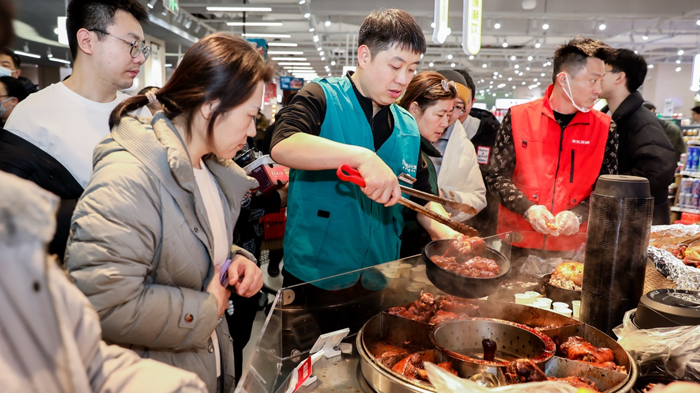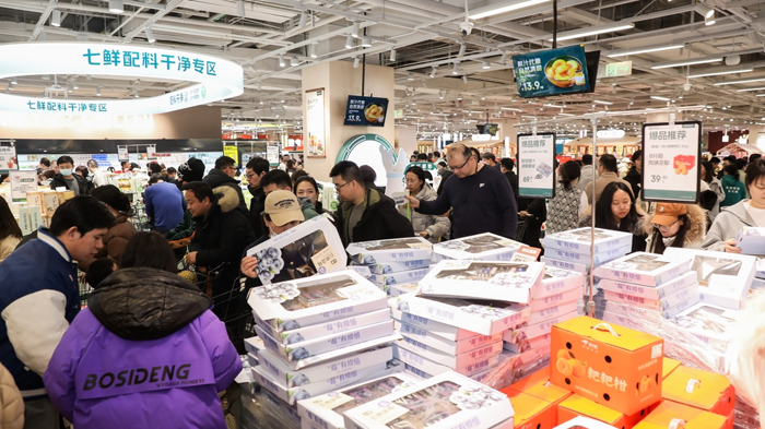 開業(yè)即限流、補(bǔ)貨車穿梭如織、試吃區(qū)排起長(zhǎng)隊(duì),這樣的火爆場(chǎng)景,在京東七鮮超市北京薈聚店連續(xù)上演了三天。1月30日開業(yè)以來,據(jù)悉七鮮超市北京薈聚店三日累計(jì)吸引客流近15萬人次,成為春節(jié)前京城線下消費(fèi)的“流量引擎”。 超4000平米的賣場(chǎng)內(nèi),從24小時(shí)鮮品到水產(chǎn)熟食、現(xiàn)烤烘焙,從年貨禮盒到自有品牌,每個(gè)柜臺(tái)前都站滿了人,社交媒體上滿是“人多到像春運(yùn)”“試吃到飽”“性價(jià)比封神”的打卡評(píng)價(jià),用實(shí)打?qū)嵉娜藲庥∽C了線下消費(fèi)的強(qiáng)勁復(fù)蘇。 “一大早就出門,沒想到還是排到了隊(duì)尾!”家住大興的王先生抱著剛搶到的草莓和現(xiàn)打牛奶,笑著吐槽道。開業(yè)三天,京東七鮮超市薈聚店每天清晨便被市民圍滿,賣場(chǎng)內(nèi)通道被購物車和人流填滿,工作人員需隨時(shí)疏導(dǎo)秩序,補(bǔ)貨車在人群中穿梭如同“移動(dòng)貨架”。 這份火爆也蔓延到了社交媒體!捌啧r新店開業(yè)人也太多了”相關(guān)話題持續(xù)升溫,網(wǎng)友們曬出的照片里,貨架前人頭攢動(dòng)、試吃區(qū)排起長(zhǎng)隊(duì)、購物車堆得滿滿當(dāng)當(dāng)!罢l懂啊!本來只想買瓶水,結(jié)果試吃到飽不用吃午飯”“人多到以為是春運(yùn)現(xiàn)場(chǎng),結(jié)賬排了20分鐘但值得”“19.9元一斤的榴蓮、99元5斤的車?yán)遄,性價(jià)比高到閉眼買”,網(wǎng)友們的真實(shí)分享,讓門店成為自帶流量的“打卡地標(biāo)”。 火爆客流的背后,是京東七鮮超市精準(zhǔn)擊中消費(fèi)者需求的優(yōu)質(zhì)商品。作為核心亮點(diǎn)的“24小時(shí)鮮品矩陣”,從田間到貨架不超過24小時(shí)的24小時(shí)菜,翠綠的豌豆苗、富硒平菇一上架就被搶購;24小時(shí)蛋全程鎖鮮,每一枚都帶著剛產(chǎn)出的細(xì)膩口感,工作人員日均補(bǔ)貨多輪仍供不應(yīng)求;以應(yīng)季紅顏草莓為代表的“24小時(shí)果”,以極致時(shí)效鎖住現(xiàn)摘口感。 線下專享的6小時(shí)鮮切牛肉同樣“鮮到極致”,清晨屠宰后3-6小時(shí)直達(dá)門店,不冷凍、無添加,剛切好就被搶空。現(xiàn)打牛奶檔口前也排著長(zhǎng)隊(duì),新鮮擠出的牛奶帶著天然乳香,家長(zhǎng)們?cè)奄徺I,“給孩子喝著放心,性價(jià)比也高”。 水果區(qū)內(nèi),19.9元一斤的進(jìn)口金枕榴蓮綿密如冰淇淋,開業(yè)首日就賣出超10噸;云南高山藍(lán)莓、巴掌大的紅顏草莓、海外直采的智利車?yán)遄,?zhēng)相吸引市民下單購買。 水產(chǎn)區(qū)里,799元/只的鮮活帝王蟹、鮮切三文魚、經(jīng)過10天純凈水凈化的吊水魚,都成為家庭年貨的熱門之選。 熟食區(qū)的煙火氣最是動(dòng)人,脆皮烤豬剛出爐就被圍得水泄不通;鹵味專區(qū)的醬牛肉、鹵雞爪也被搶購,成為年夜飯的“硬菜備選”,二八大杠自行車后座的現(xiàn)切切糕,還原老式售賣場(chǎng)景。 酒水區(qū)的年貨氛圍格外濃厚,酒廠直供的京鮮舫6號(hào)白酒,雙支禮盒僅299元,海外直采葡萄酒低至29.9元/瓶,成為囤貨主力,“自飲宴請(qǐng)都合適,性價(jià)比比專賣店高”。 從接近京東的人士處獲悉,隨著此次北京薈聚店投入運(yùn)營(yíng),京東七鮮超市在即時(shí)零售領(lǐng)域行業(yè)首創(chuàng)的“1+N”(1家中心店+N家衛(wèi)星小店)模式,已率先邁入成熟穩(wěn)定的規(guī);A段。 |