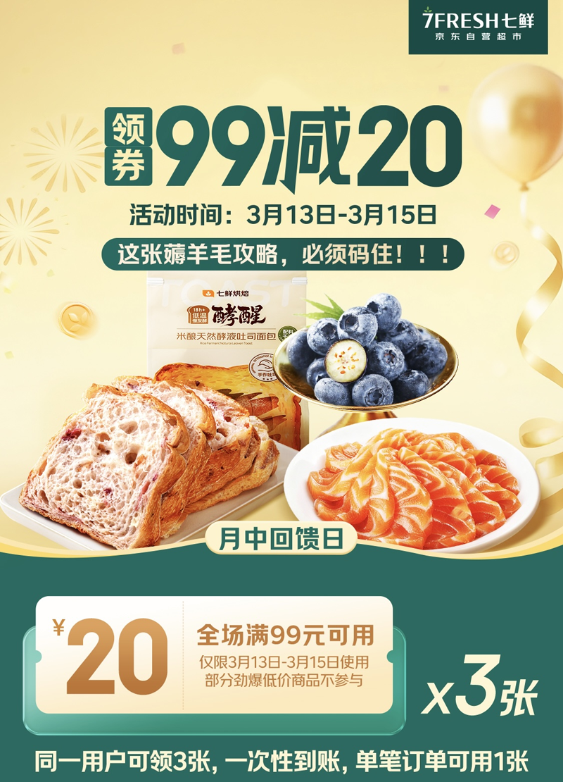 春意漸濃,正是煥新餐桌、補(bǔ)給家需的好時(shí)節(jié)。3月13日-3月15日(本周五至周日),備受消費(fèi)者期待的京東七鮮超市“月中回饋日”活動(dòng)再度來襲。活動(dòng)延續(xù)七鮮一貫“滿額直減、不燒腦”的實(shí)惠政策,除部分直降爆品外,全場(chǎng)可領(lǐng)券享“滿99減20”優(yōu)惠。無論是追求極致新鮮的每日餐桌,還是為未來一周甚至更長(zhǎng)時(shí)間的家庭儲(chǔ)備,本周末都是一次不容錯(cuò)過的“囤貨”良機(jī)。 活動(dòng)期間,每位用戶可通過七鮮APP或小程序領(lǐng)取3張“滿99減20”優(yōu)惠券,線上線下通用;還可通過京東APP自營(yíng)秒送頻道再享3張用于在線下單。單筆訂單限用1張,多張券可分多單使用,既適合到店體驗(yàn)購(gòu)物樂趣,也適合線上享受最快30分鐘送達(dá)的便捷。 京東七鮮行業(yè)首推的“24小時(shí)鮮”,作為七鮮標(biāo)桿性生鮮系列,24小時(shí)內(nèi)從源頭到門店,只賣一天,持續(xù)以確定性的時(shí)間標(biāo)準(zhǔn)定義新鮮。無論是24小時(shí)從田間地頭到門店貨架的“24小時(shí)菜”,24小時(shí)從出廠到門店、品質(zhì)達(dá)AA級(jí)(哈夫值≥80)的“24小時(shí)蛋”,鎖住草莓現(xiàn)摘般鮮活口感的“24小時(shí)果”,還是新近上線的“24小時(shí)肉”,本周末均將以近期最實(shí)惠的價(jià)格,把剛離田、剛出廠的生命力直接搬進(jìn)廚房,讓春日餐桌充滿元?dú)狻?/div> 除了極致的新鮮,京東七鮮各類獨(dú)具研發(fā)巧思、應(yīng)時(shí)上新的自有品牌商品,也一直是“月中回饋日”的亮點(diǎn)。隨著天氣轉(zhuǎn)暖,多款新上市特色酒飲值得關(guān)注:七鮮青梅酒甄選福建詔安當(dāng)季青梅原汁釀造,原果汁含量超九成,入口清新酸甜,滿是春天的氣息;七鮮乳酸菌風(fēng)味氣泡酒經(jīng)過30天超長(zhǎng)控溫發(fā)酵,融合6種乳酸菌發(fā)酵的順滑與五常圓糯米的清甜,帶來層次豐富的微醺體驗(yàn)。在滿減優(yōu)惠加持下,這些自有商品成為周末小聚或獨(dú)處時(shí)光的完美點(diǎn)綴。 七鮮烘焙的驚喜同樣不容錯(cuò)過。此前在北京薈聚新店引發(fā)排隊(duì)熱潮的“酵醒”酵液吐司,采用天然米曲酵液、經(jīng)過超18小時(shí)慢發(fā)酵,以“第五天依然濕潤(rùn)柔軟”的口感顛覆傳統(tǒng)認(rèn)知,配料干凈,不添加工業(yè)香精,近期京津全面上市后再度成為“吐司頂流”。對(duì)于時(shí)令品青團(tuán),七鮮也上新了眾多新奇特口味:奶皮子山楂的酸甜交融、茉莉龍井的茶韻清雅、楊枝甘露的熱帶風(fēng)情、藍(lán)莓乳酪的清新馥郁……傳統(tǒng)時(shí)令點(diǎn)心在這里玩出新花樣,無論作為早餐選擇還是下午茶,都能成為撫慰春日的極佳味蕾體驗(yàn)。 除了生鮮食品,京東七鮮“滿99減20”的實(shí)惠更同步延伸到全場(chǎng)日用品領(lǐng)域。各類七鮮自有品牌的紙面巾、純水濕巾、一次性紙杯、洗臉巾等高頻日用品同樣參與滿減。這些需要頻繁復(fù)購(gòu)的“剛需”用品,趁活動(dòng)批量下單,既省心又省錢,成為未來一段時(shí)間做好充足補(bǔ)給的精明之選。 少數(shù)爆品不參與滿減,繼續(xù)以更直接的“價(jià)格直降”或“擊穿價(jià)”形式回饋消費(fèi)者。如顆粒飽滿、果香濃郁的云南高山巨無霸藍(lán)莓,“只賣7天、逾期下架”贏得口碑的30枚裝七鮮無抗大碼鮮雞蛋。這種“滿減+直降”的雙重模式,既給了消費(fèi)者靈活選擇的余地,也保證了各類商品均能以最實(shí)在的價(jià)格觸達(dá)用戶。 這個(gè)周末,京東七鮮用一場(chǎng)“滿99減20”的全品類回饋,把高品質(zhì)和性價(jià)比裝進(jìn)購(gòu)物車。不論是走進(jìn)門店慢慢挑選,還是打開七鮮APP、小程序一鍵下單,都是一次輕松又滿足的生活補(bǔ)給。趁著春光正好,在這個(gè)3月,輕松囤出滿滿的小確幸。 |